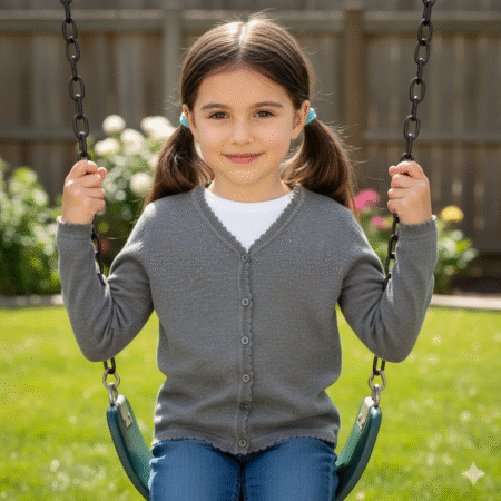 7-8 years Big Buttons Light Gray Knitted 2 Pocket Wool Sweater ₨ 1,899
