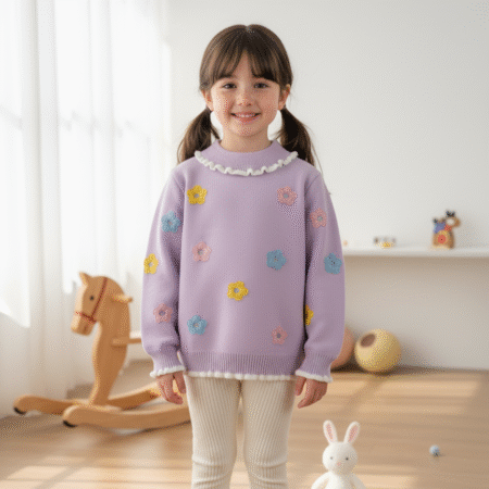 2-8 Years Floral Embroidered Inner Coral Fur Extra Warm Full Sleeves Cardigan ₨ 2,199