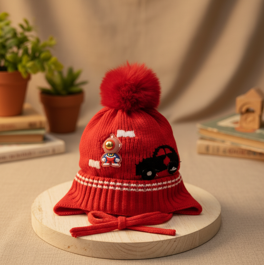 This cute wool cap makes a wonderful addition to your little ones winter wardrobe. This cap is lined with soft warm fabric from inside.