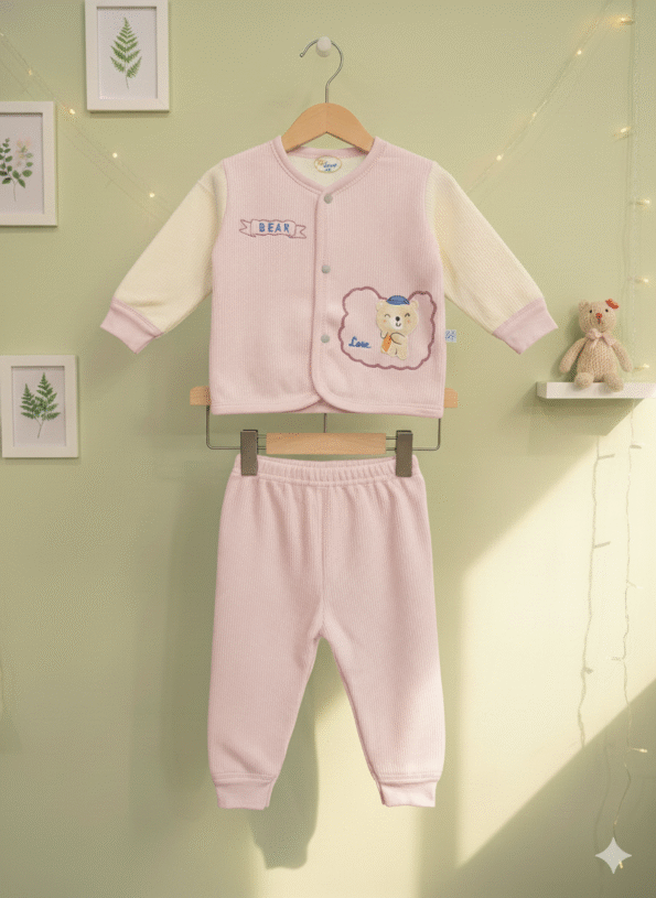 Keep your baby stylish and warm with this must-have fleece set that combines comfort, practicality, and cuteness in every stitch.
