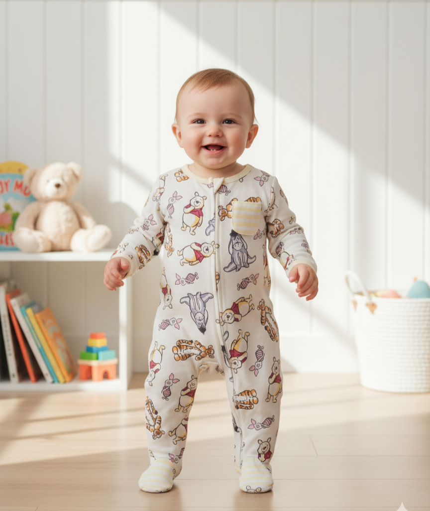 Convenient Full-Length Zipper: Features a smooth, chin-to-toe zipper for lightning-fast diaper changes and easy dressing—no more fumbling with buttons in the middle of the night!