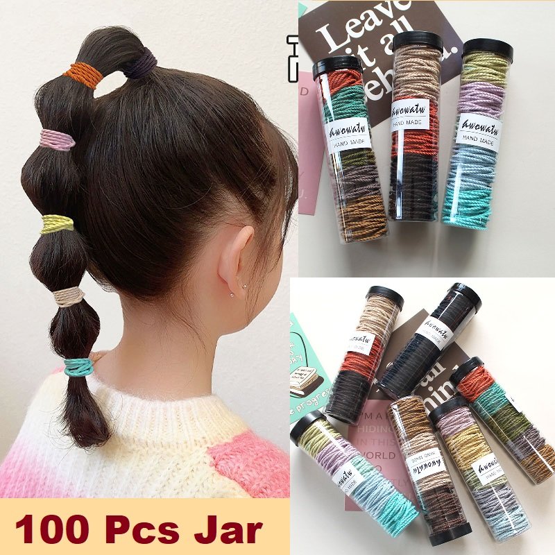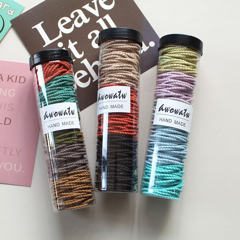 Children's 50 pcs Canned Girl's Towel Rings Elastic Stripped Hair Ropes Zipper Bag