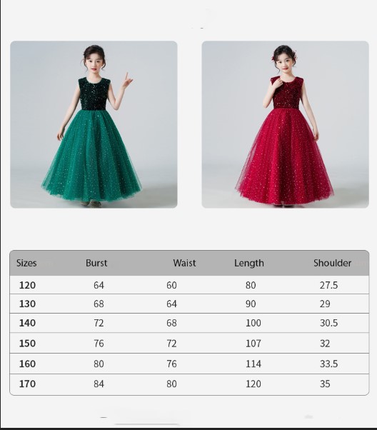3-12 years Girl Sequined Upper Body Sleeveless Princess Glitter Stars Long Length Gown
