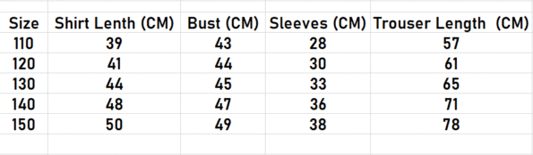 | Sizes | 110 (3-4 Year ), 120 (4-5 Year ), 130 (5-6 Year), 140 (7-8 Year), 150 (9-10 Year ) |
