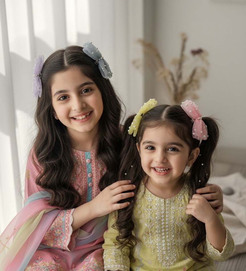 Add a touch of charm to any hairstyle with our Pearl Mesh Bow Hair Pins. These premium-quality clips are crafted with soft mesh fabric and decorated with delicate pearls for a classy, elegant look. Perfect for daily wear, school, parties, and photoshoots.