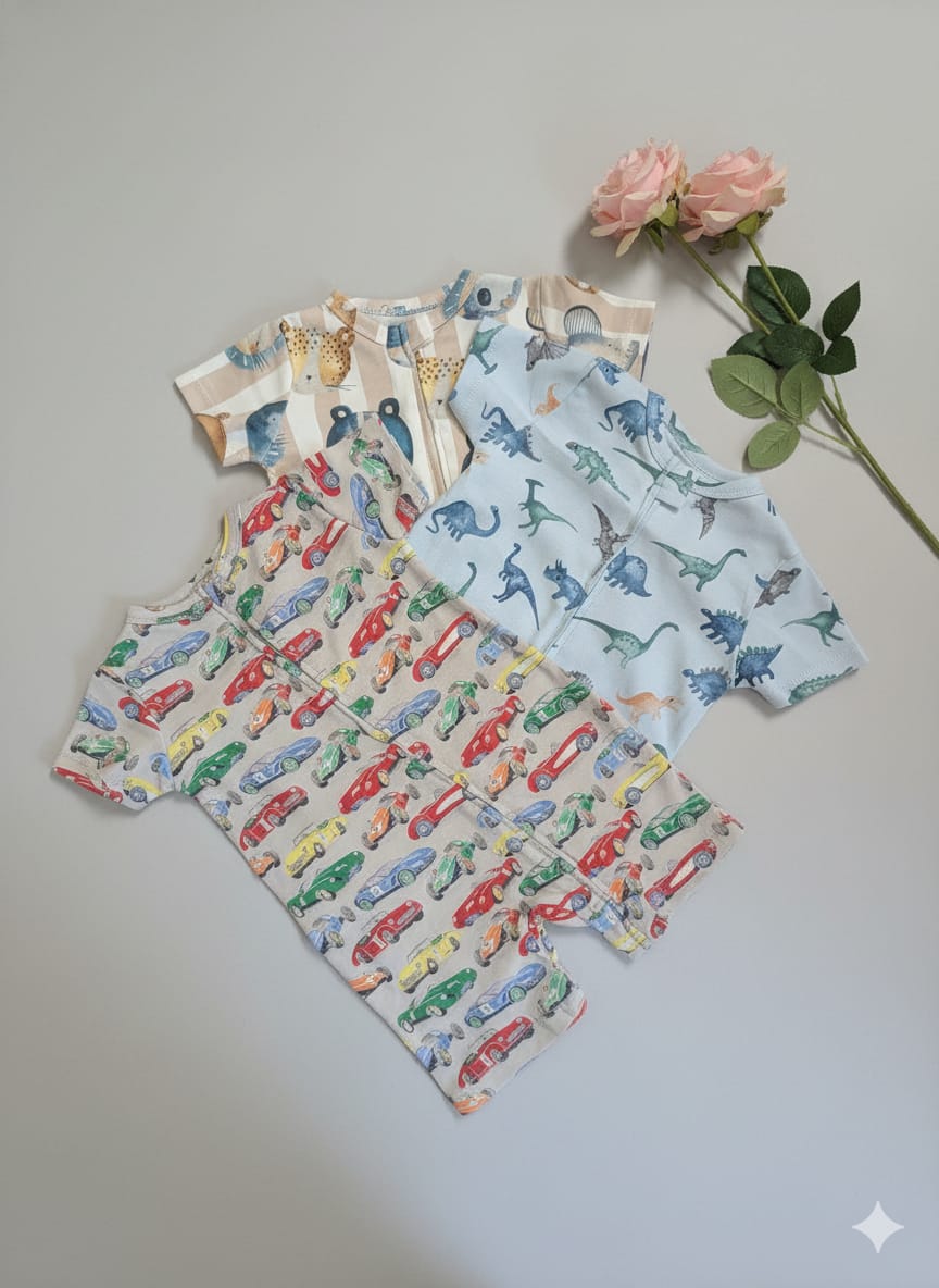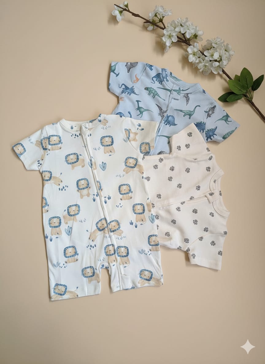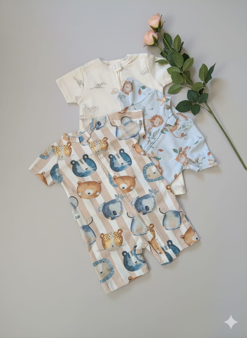 Upgrade your baby’s daily essentials with our Pack of 3 Premium Newborn Zipper Rompers. This value bundle is designed for parents who refuse to compromise on style or convenience. Featuring a variety of charming prints—from playful animals and dinosaurs to vibrant florals and classic patterns—this set ensures your little one stays comfortable and camera-ready all day long.