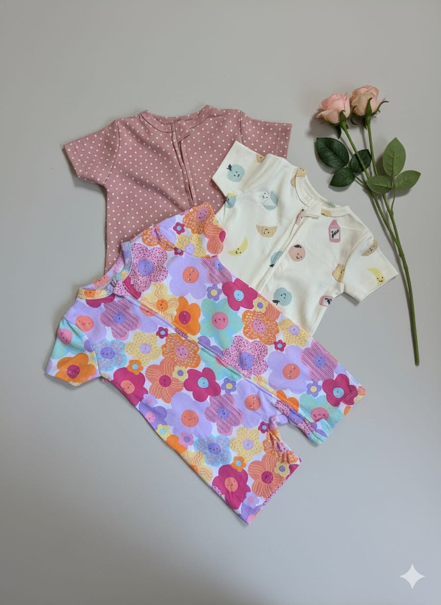 Quantity: 3 Rompers per pack