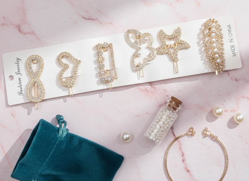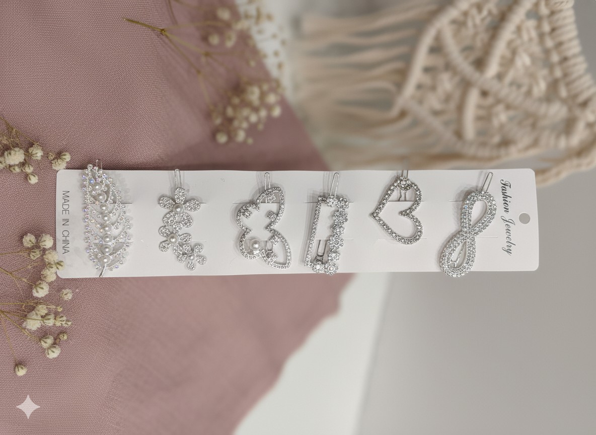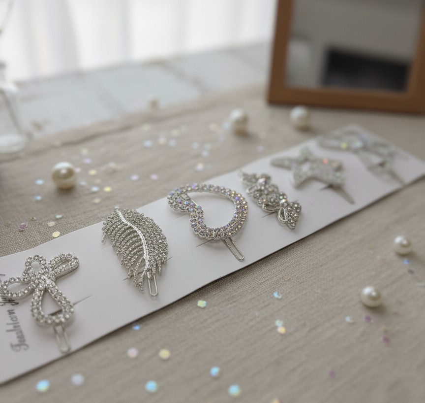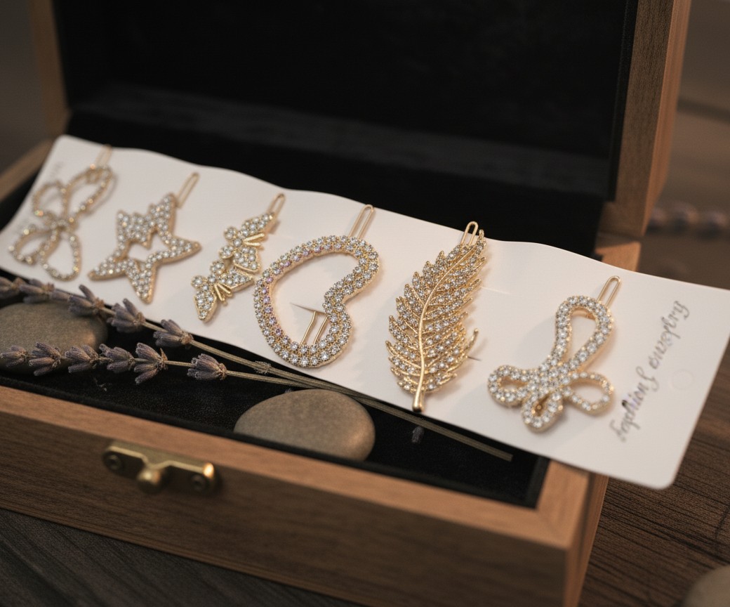Sparkling Rhinestone Hair Clip Set – 6-Piece Assortment