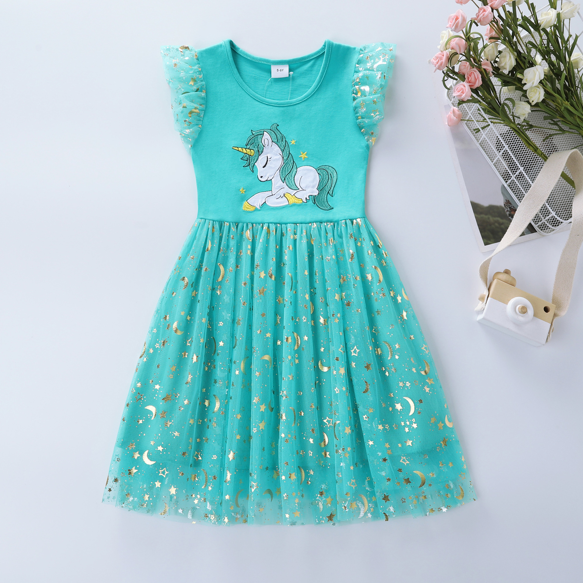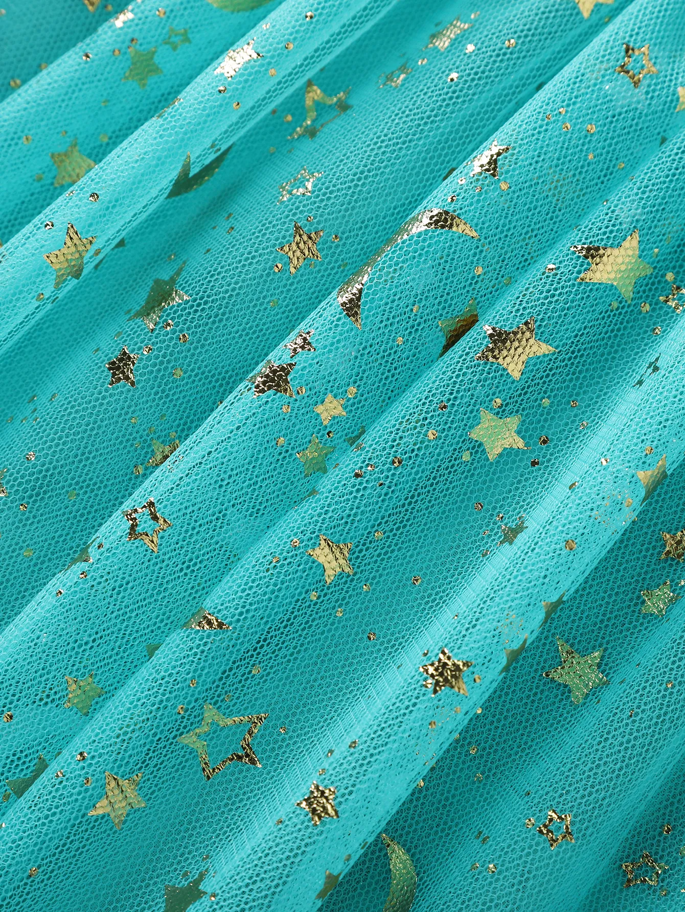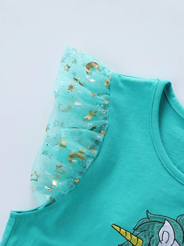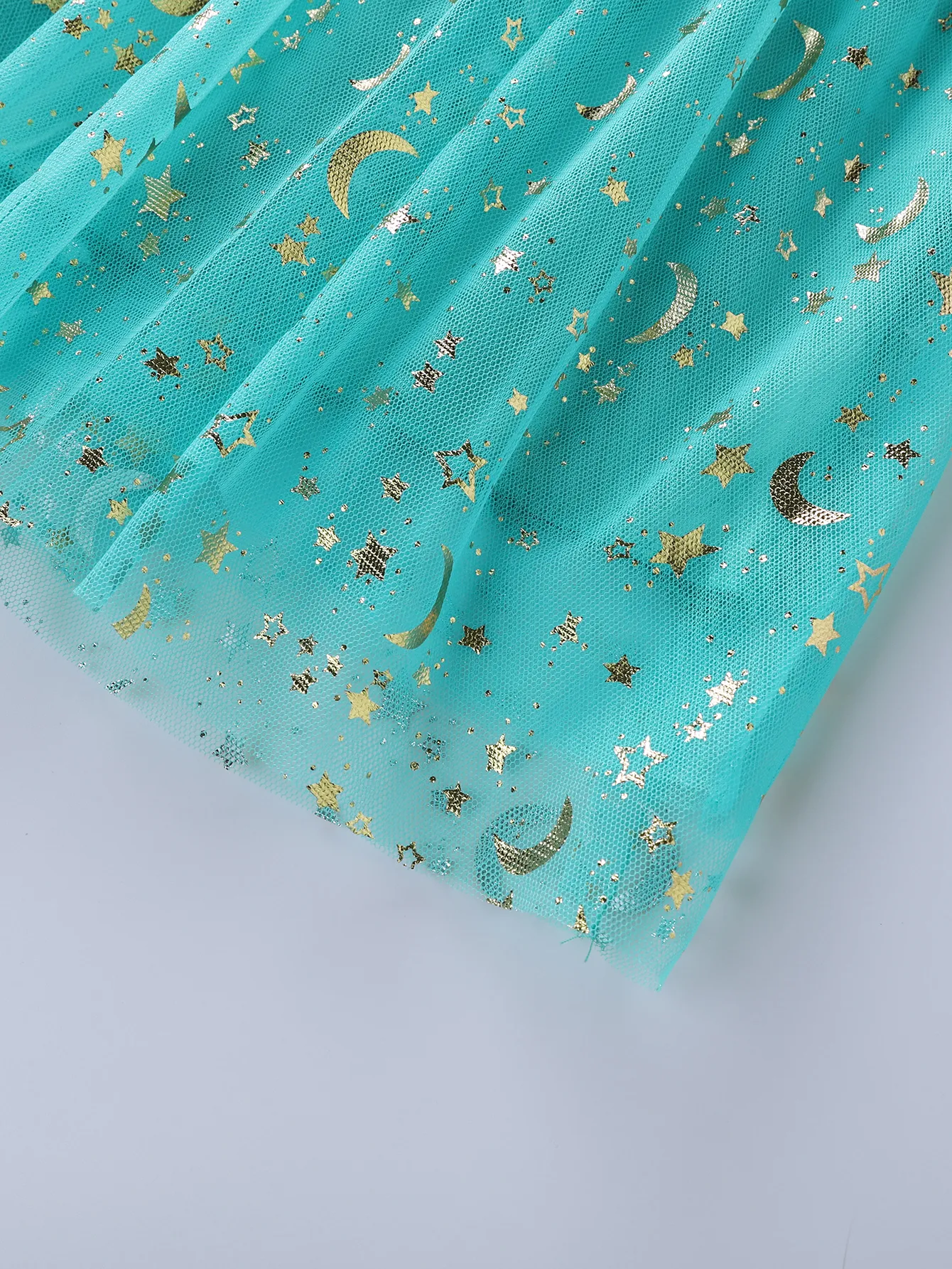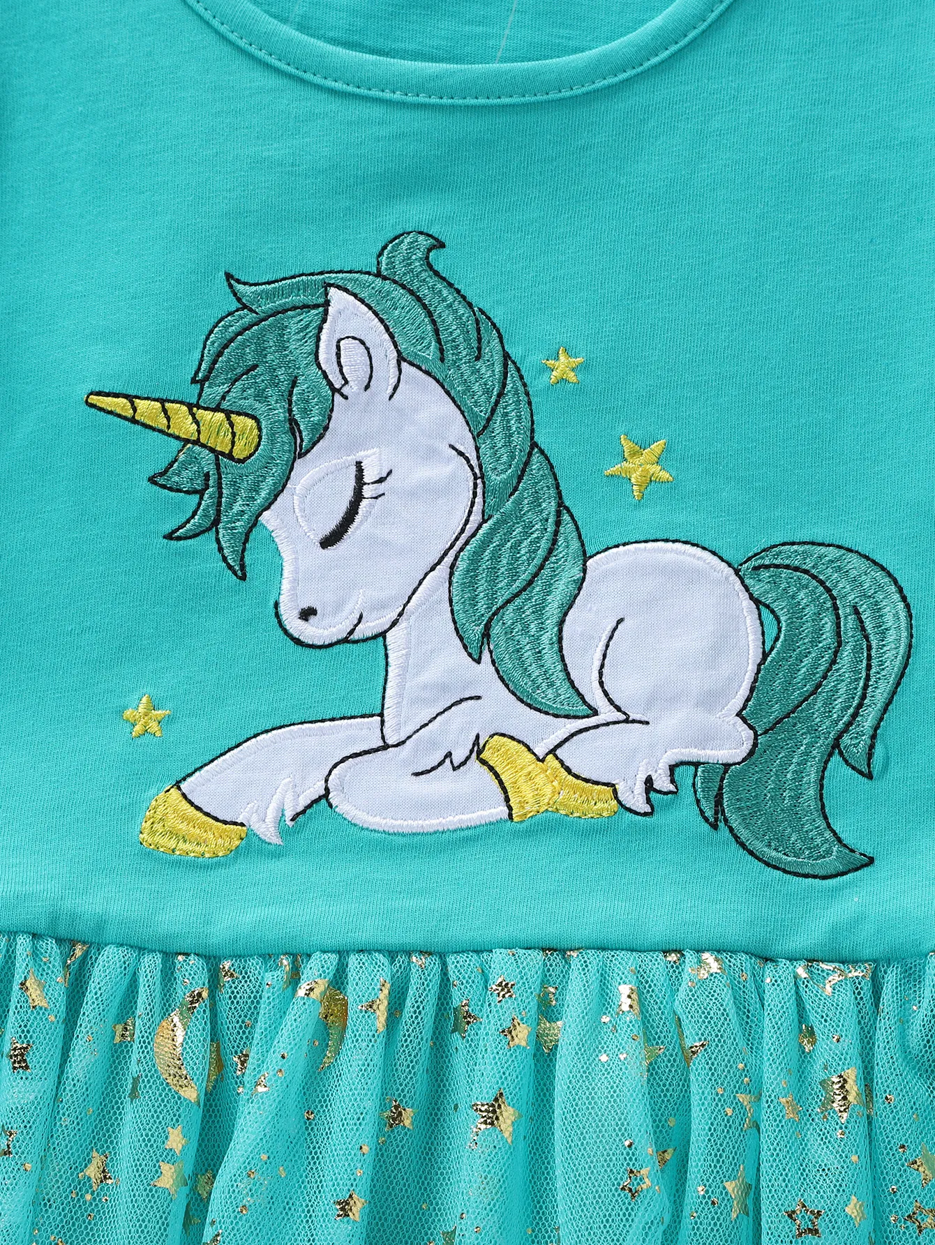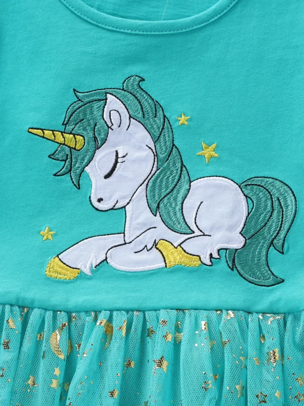 Beautiful Sea-Green Glitter Moon&Star Unicorn Net Frock