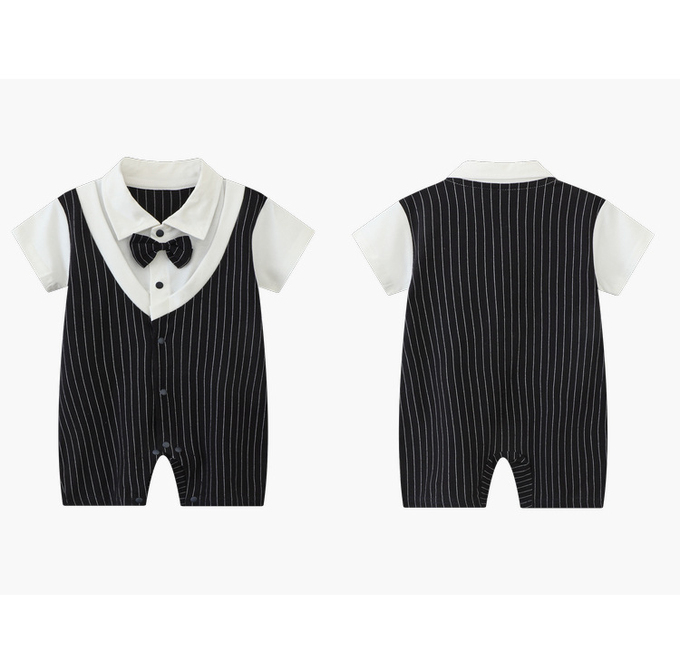 Black Gentlemen Half Sleeved Half Legged Romper For Baby Boys