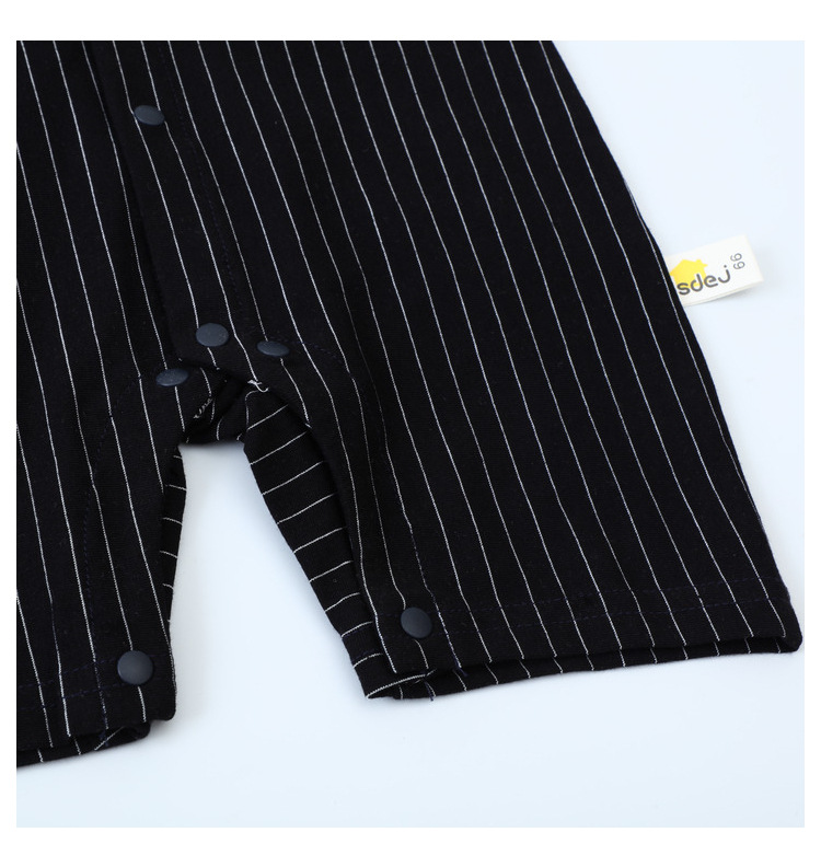 Give your little gentleman a smart and adorable look with this Black Gentlemen Half Sleeved Half Legged Romper for Baby Boys. Designed with a stylish striped pattern and classic polo-style collar, this baby romper combines comfort, style, and practicality for everyday wear.