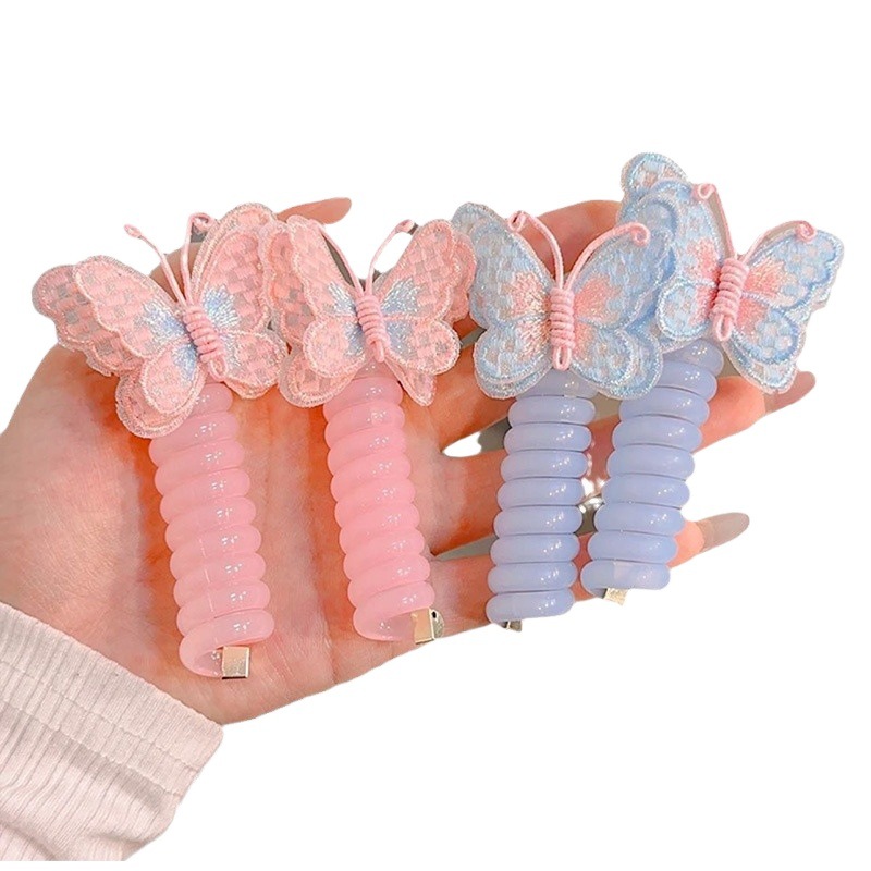 Children’s Curly Cute Cartoon Butterfly Embroidered Phone Cord Hair Band