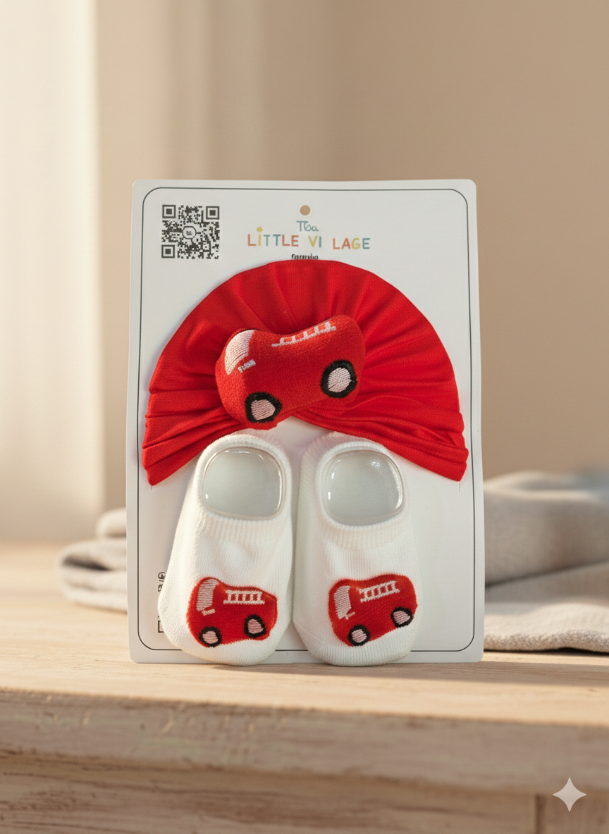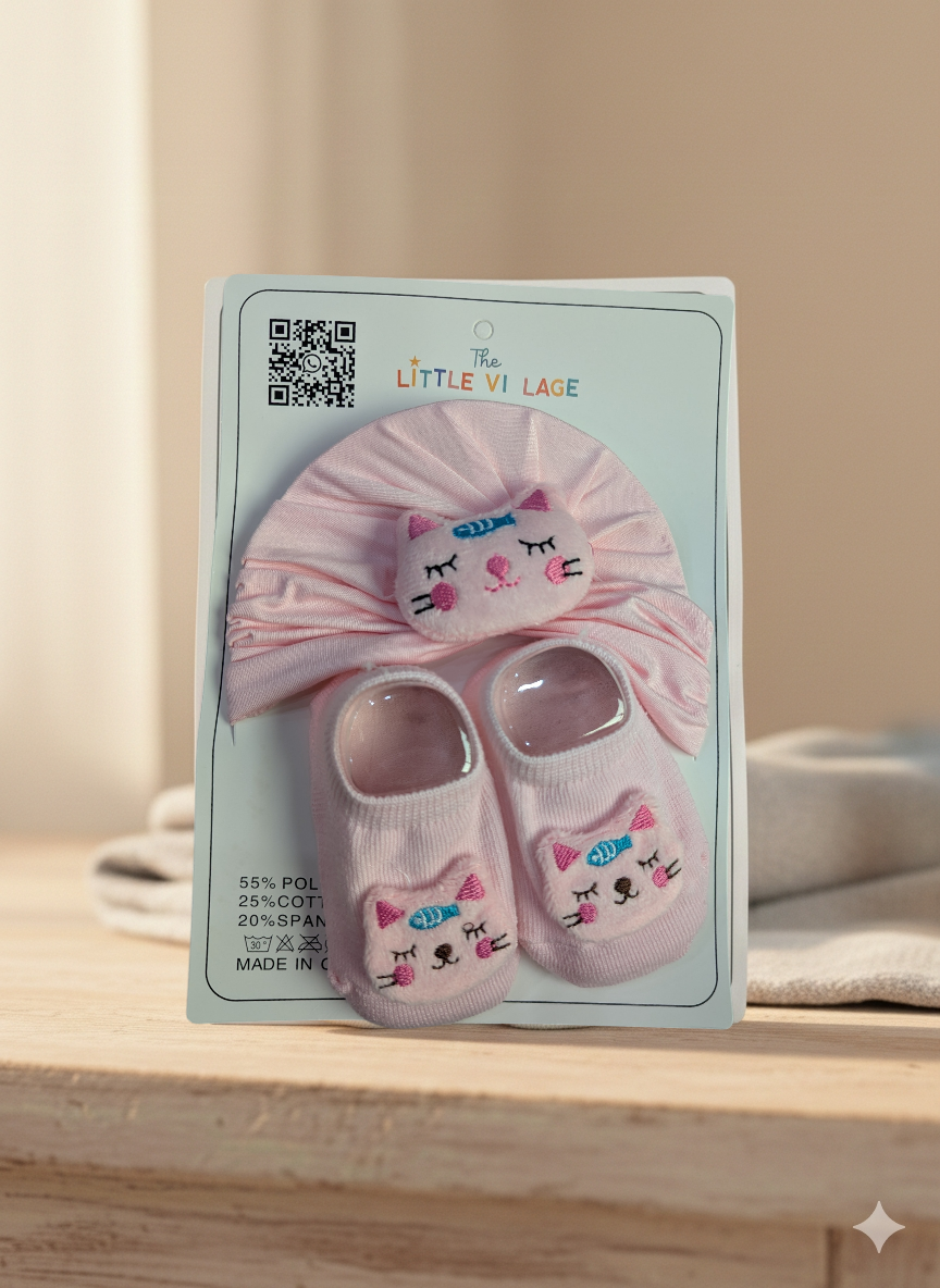 Baby Cap & Socks Set – Cute Cartoon Newborn Gift Set | Soft & Comfortable | 0-6 Months