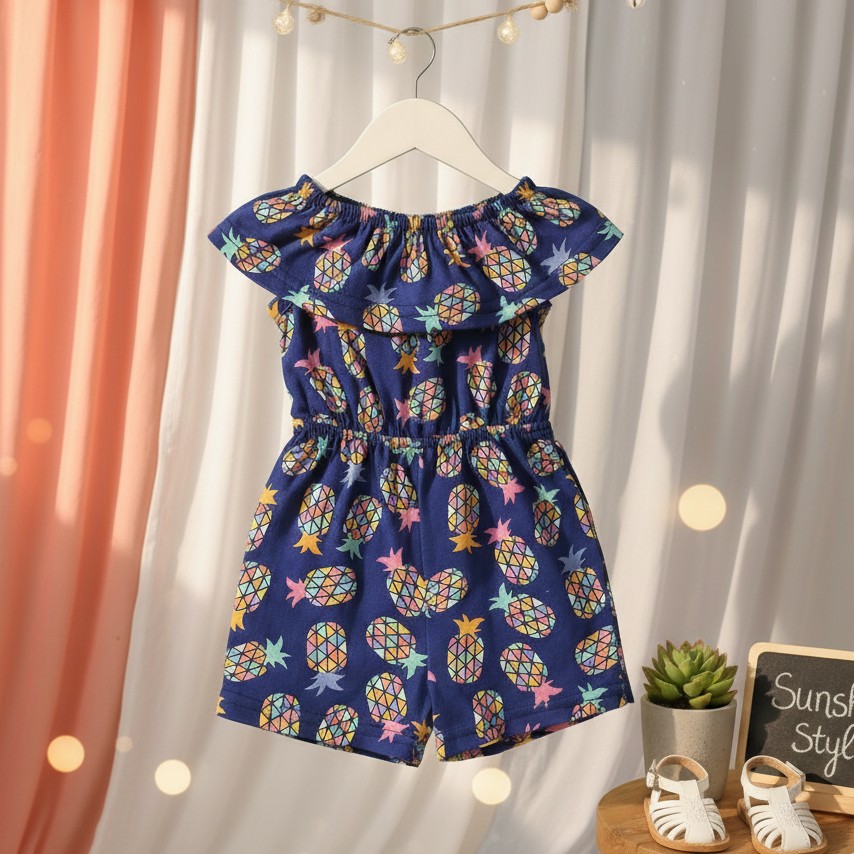 Cute Baby Pineapple blue Cotton Summer Jumpsuit