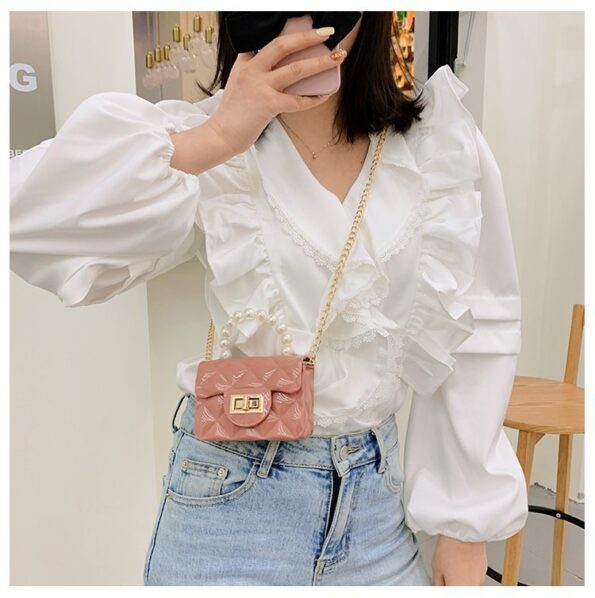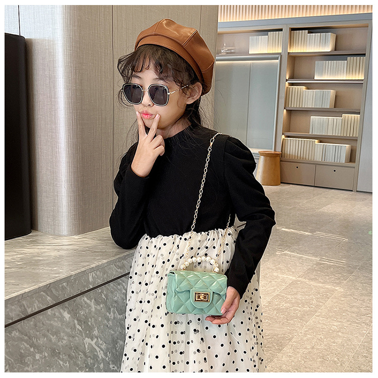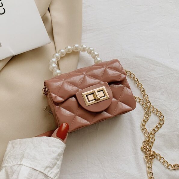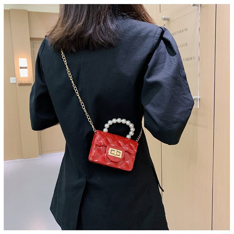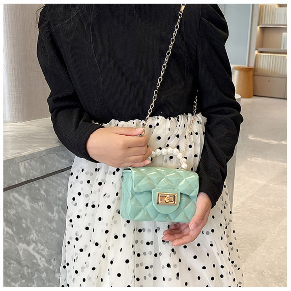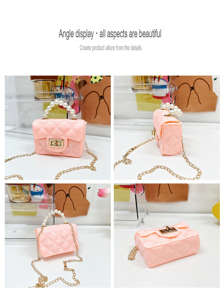 Add a touch of sparkle to any outfit with this stylish small square jelly bag, featuring a stunning diamond-cut design and an elegant pearl handle. Compact yet eye-catching, this bag is perfect for carrying your essentials in style – from playdates to parties.
