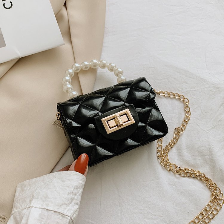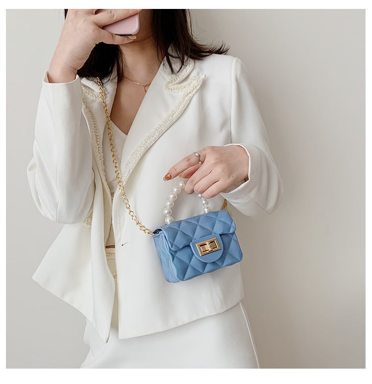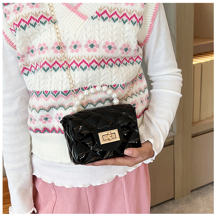 Chic & Charming – Small Square Diamond-Cut Jelly Bag with Pearl Handle