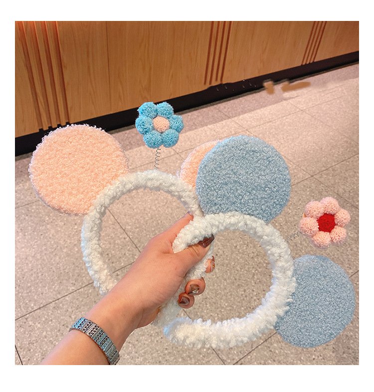 Cute Soft Cartoon Ears Small Spring Flower Face Wash Plush Headband