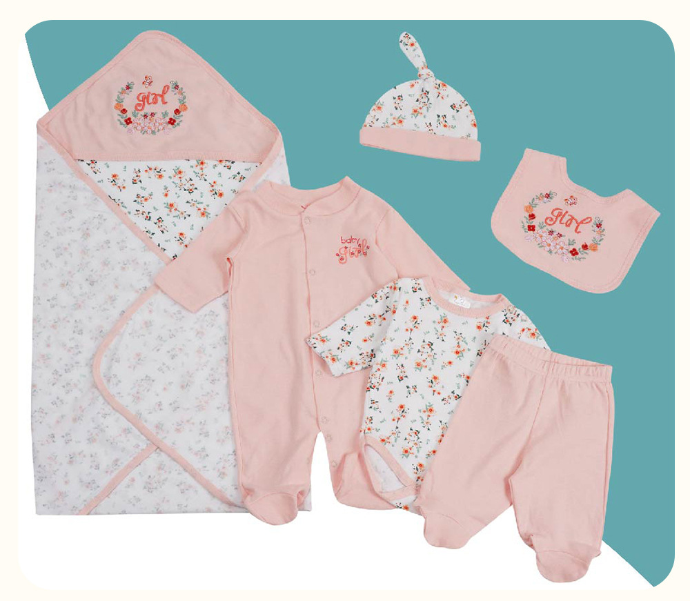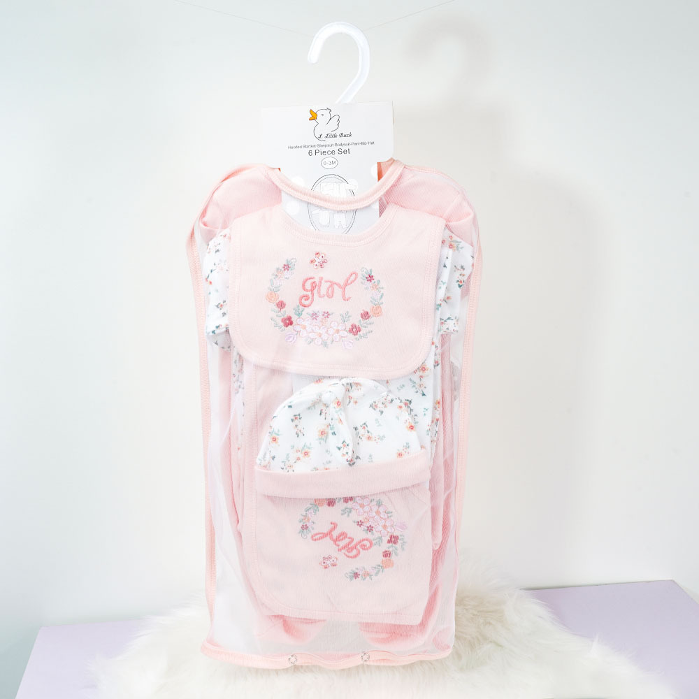 This baby girl 6-piece cotton set is a must-have for every new parent looking for comfort, quality, and cute style in one package.