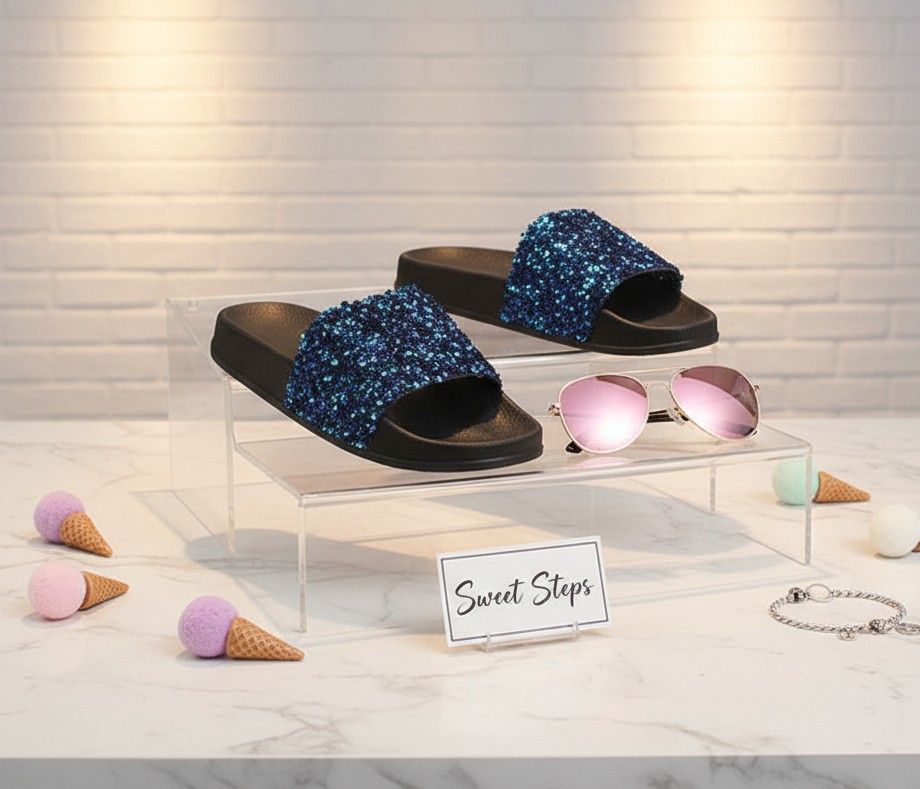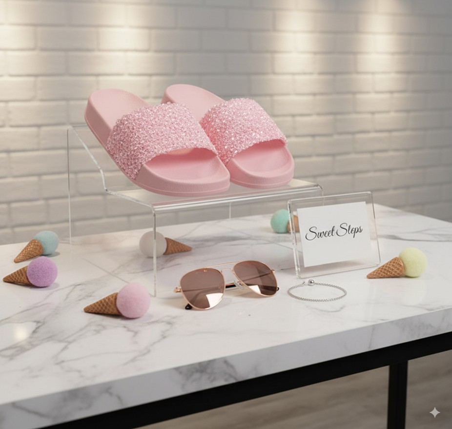 Girls Gorgeous 3D Hearts & Glitter Slippers For Summer