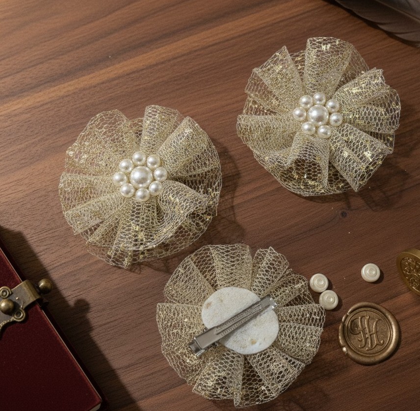 • 🌸 Golden Pearl Mesh Alligator Hair Pins