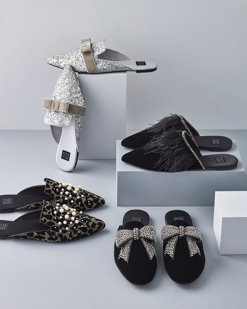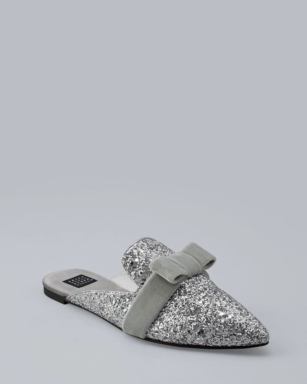 Gray Pointed Glitter Velvet Bow Women Shoes