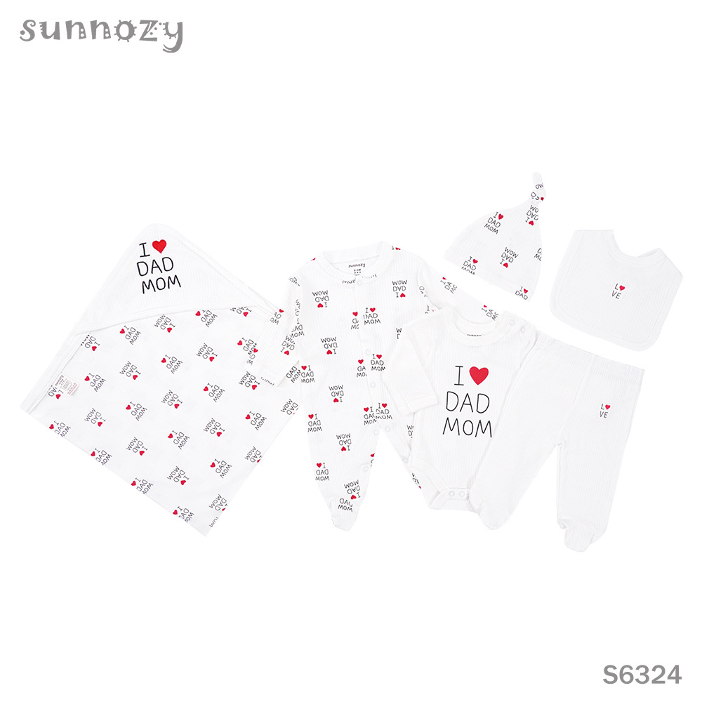 Give your little one the warmest welcome with our “I Love Mom & Dad” Newborn Essentials Set! This charming 5-piece collection is designed for ultimate comfort and undeniable cuteness. Crafted from the softest, breathable fabric, each piece features an adorable “I ❤️ DAD MOM” print, letting your baby share the love from day one.