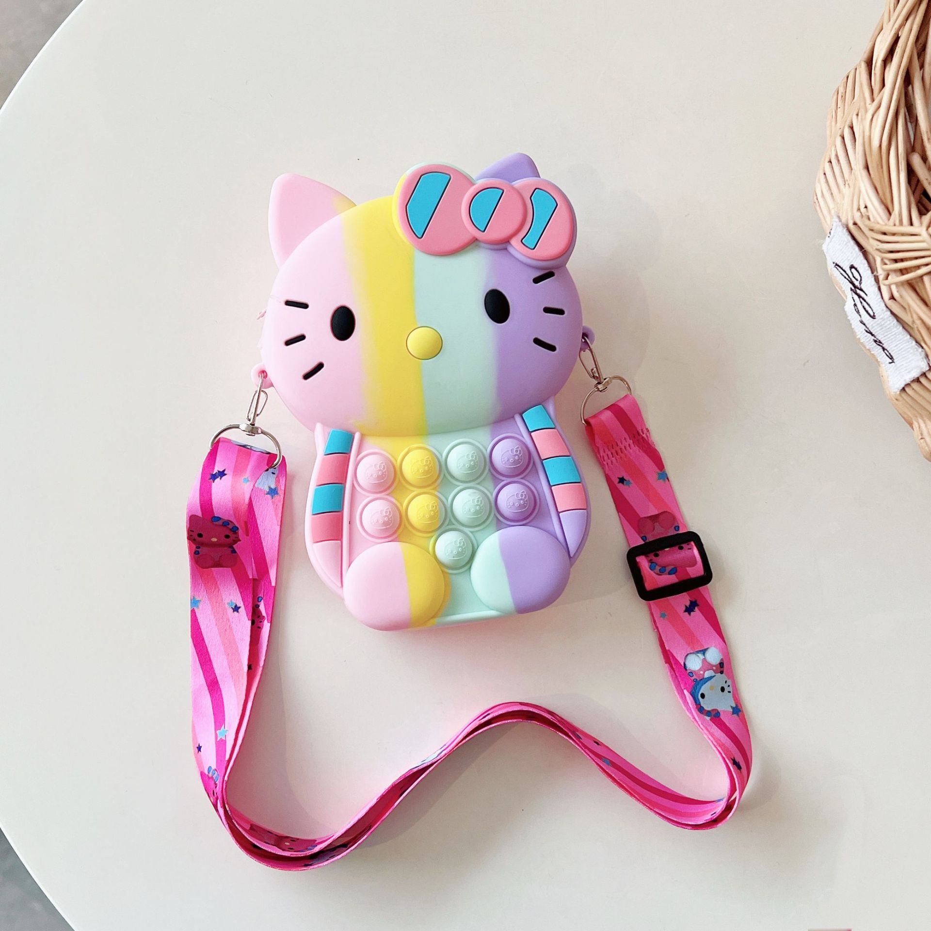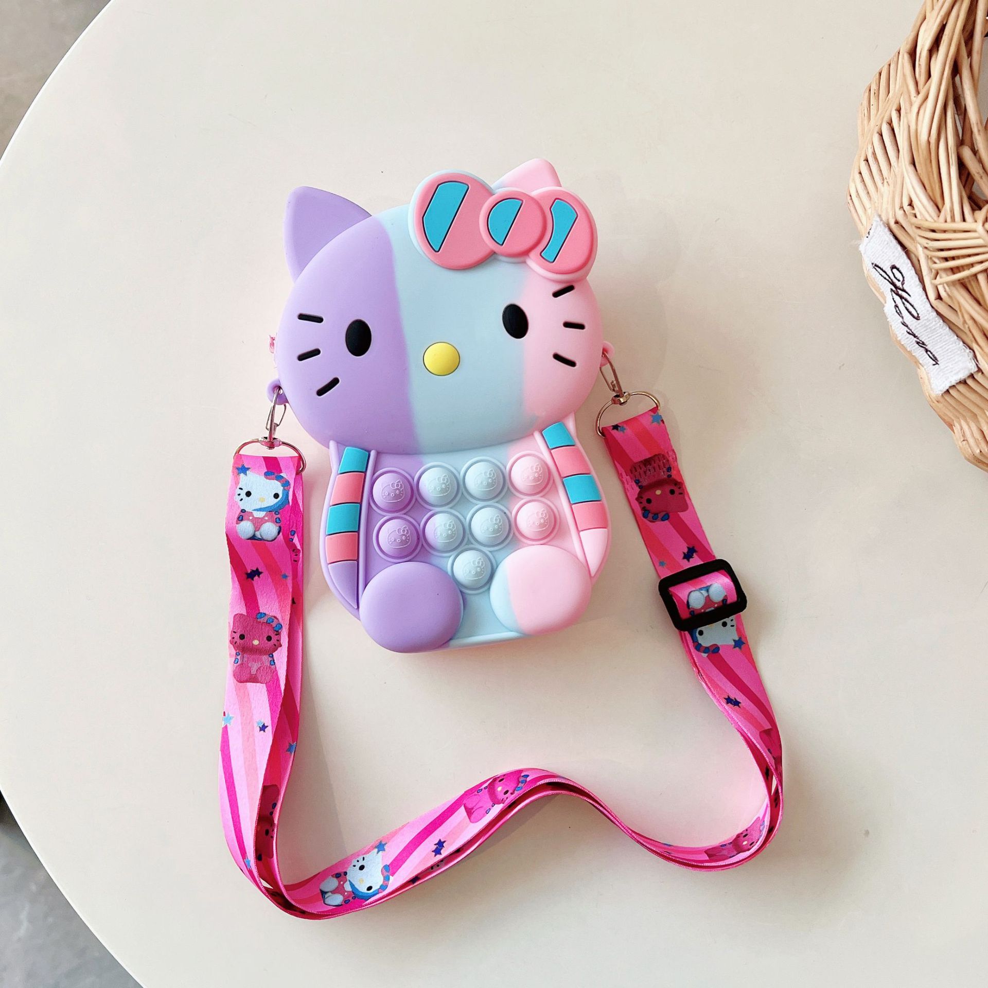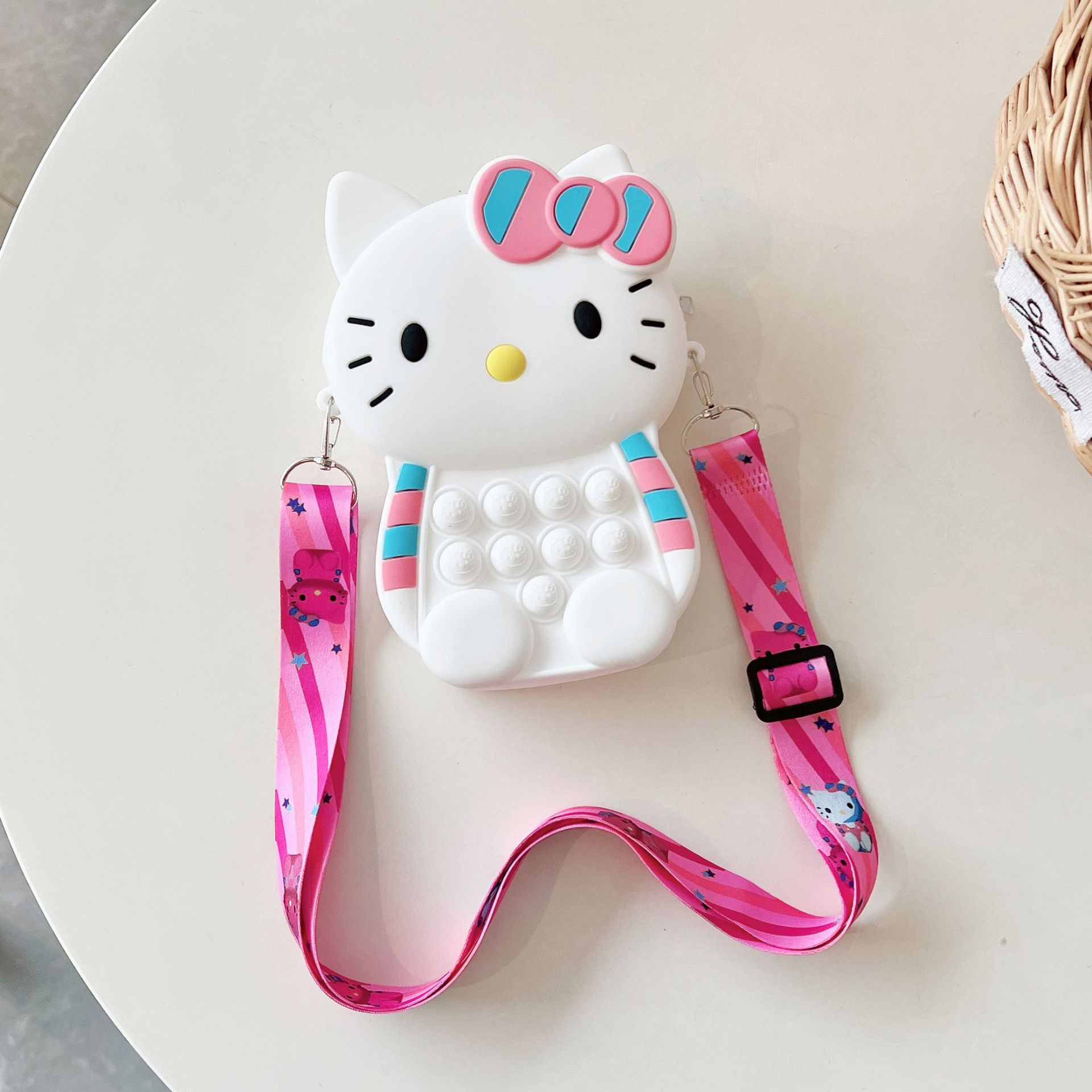 Kitty Bow Pop Fidget Shoulder Zip Bag Of Silicon