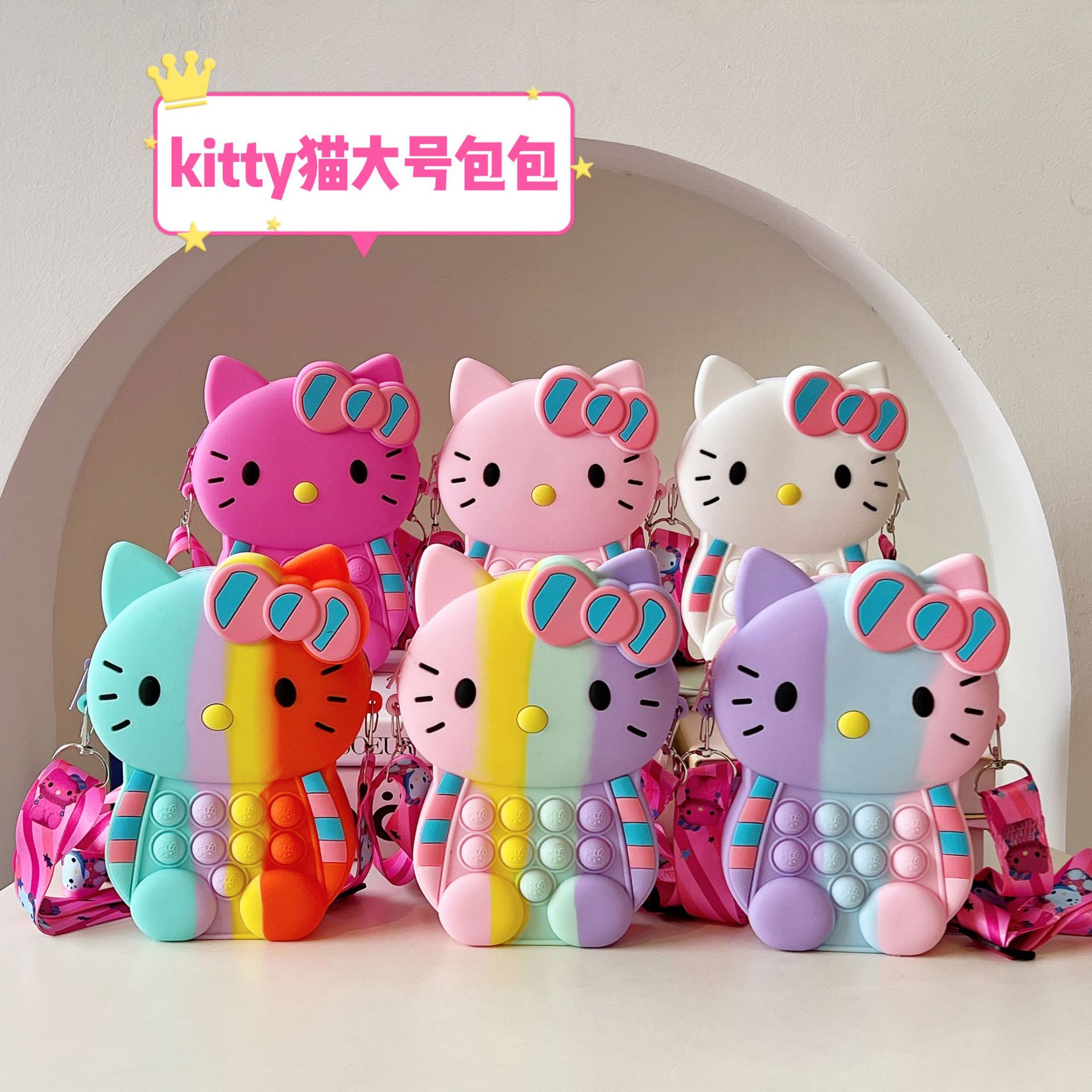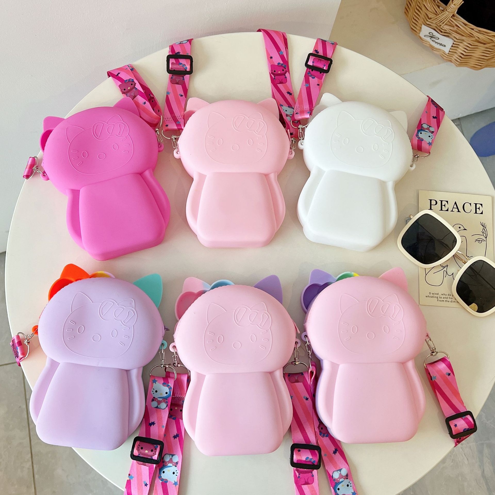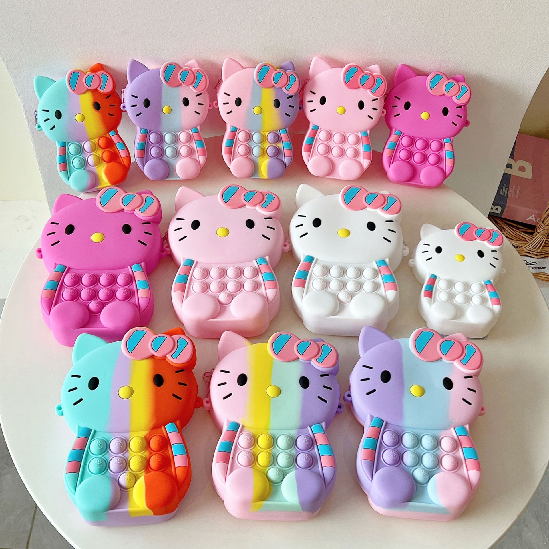 Kitty Bow Pop Fidget Shoulder Zip Bag Of Silicon