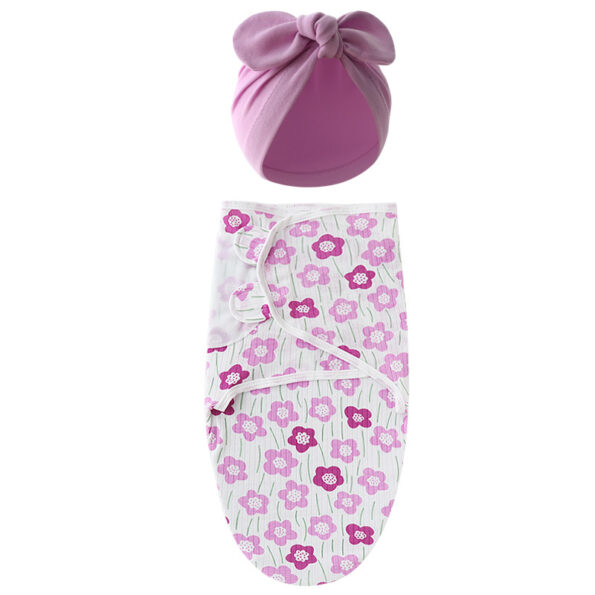 New Baby Swaddle & Sloid Clr Bow Cap Summer Cotton Hug Wrapping Swaddle