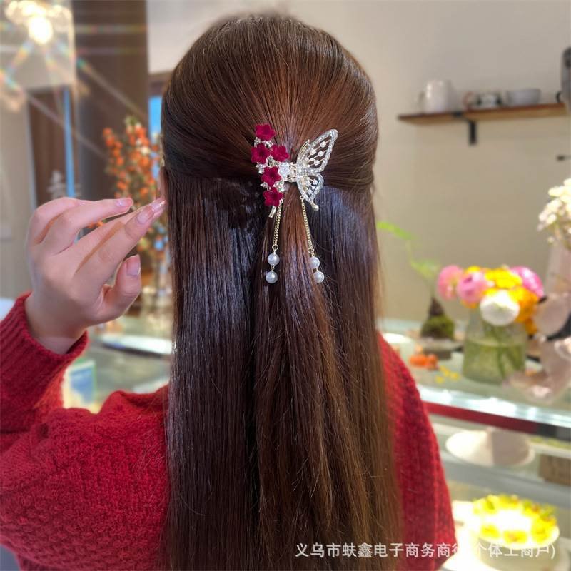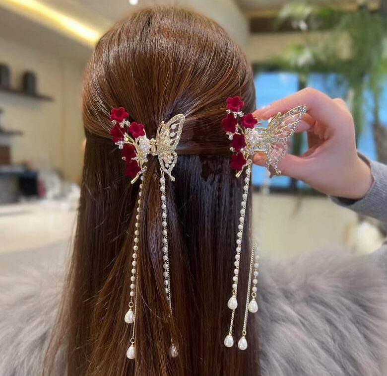 | Design | Red Flower Butterfly Tassel Clip |