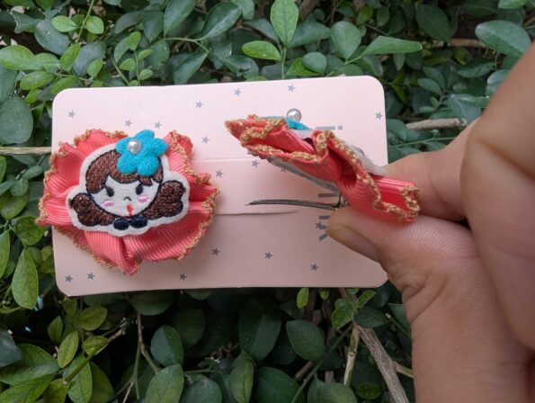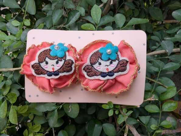 Add a touch of charm to your hairstyle with our Stainless Steel Hair Pins, beautifully designed for both durability and style. Each pin features a delicate ribbon flower adorned with an embroidered doll face, making it a perfect blend of elegance and cuteness. The stainless steel ensures a strong, long-lasting grip, while the handcrafted embellishments bring a playful yet graceful look to any outfit.