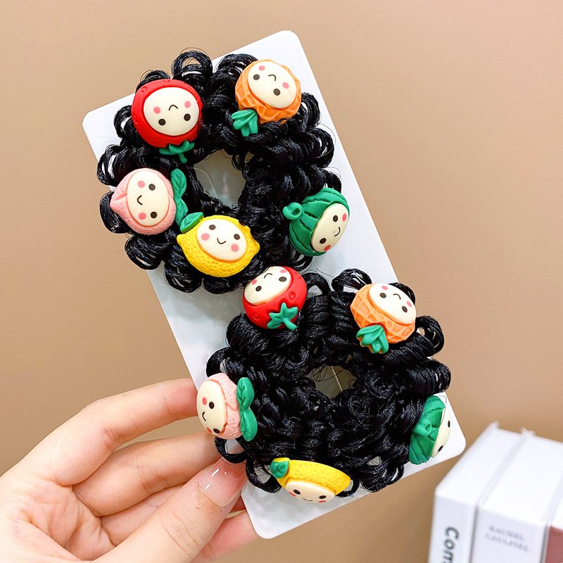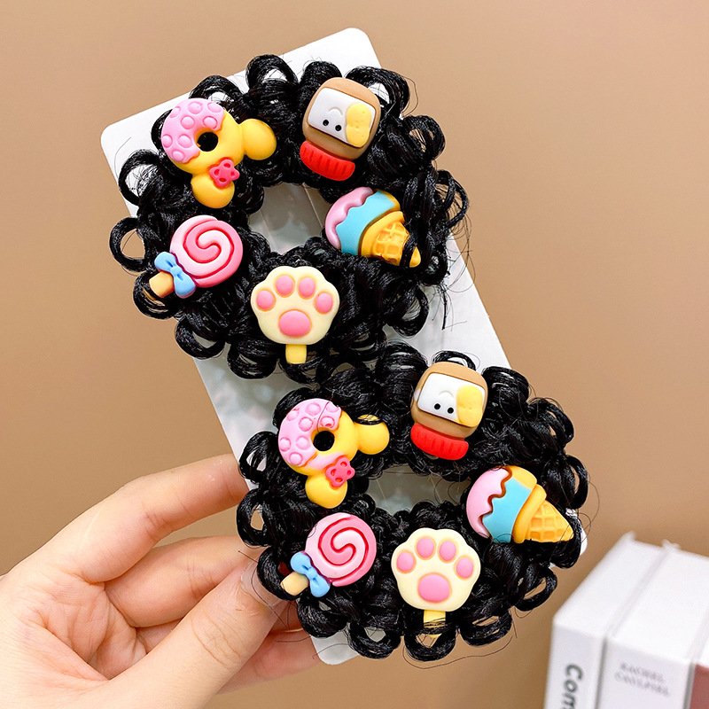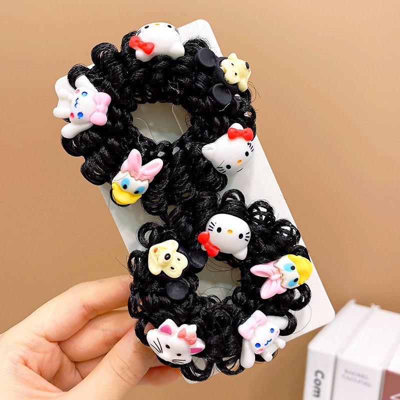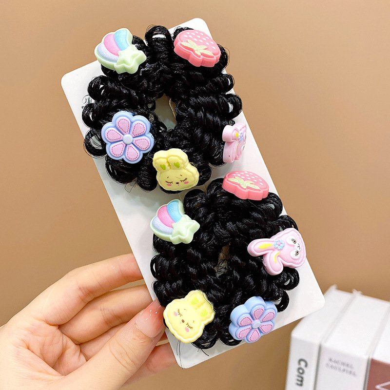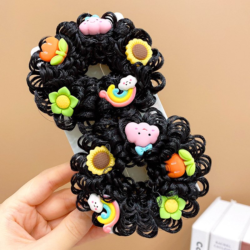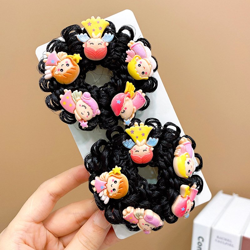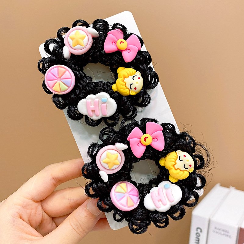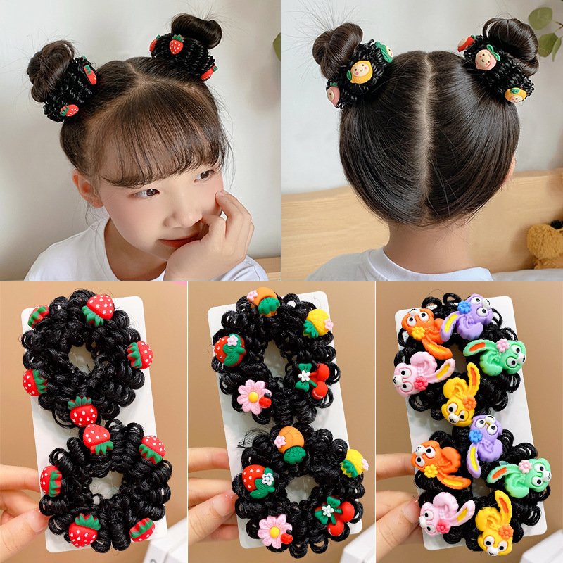 Pair of Children’s Cartoon Hair Wig High Elasticity Donut Bun
