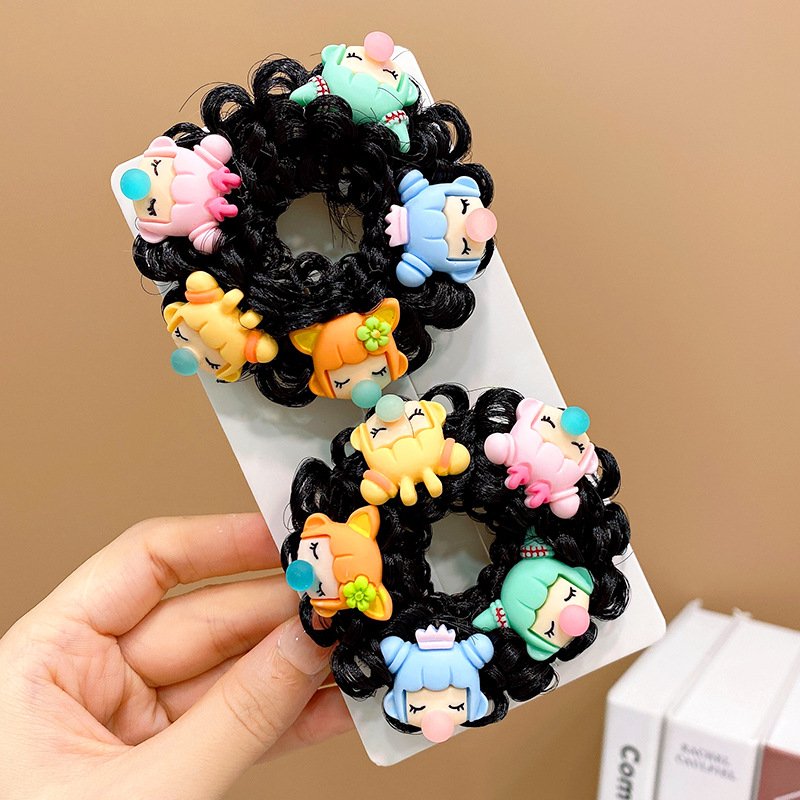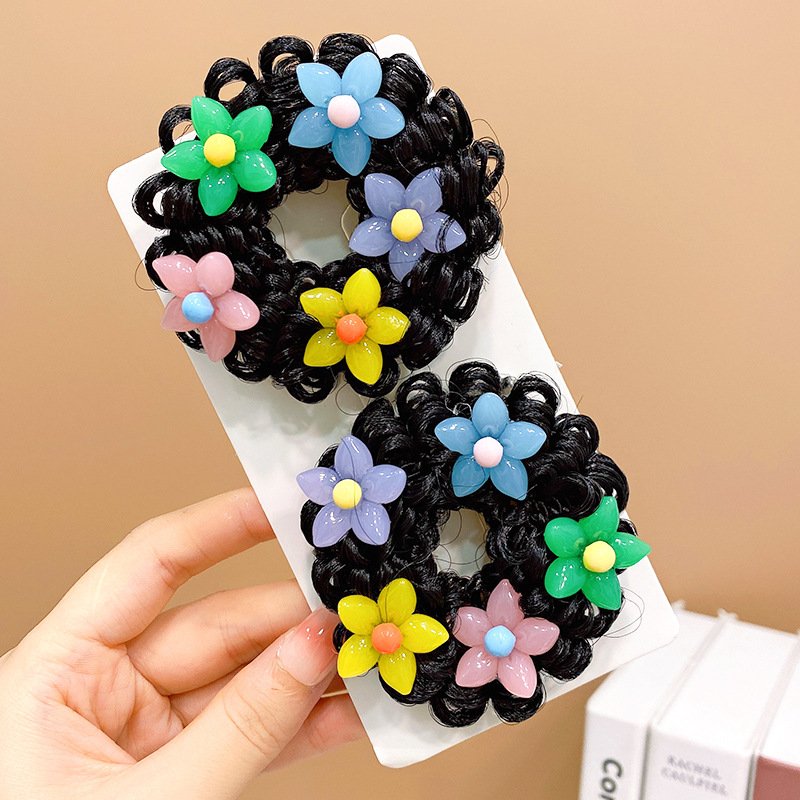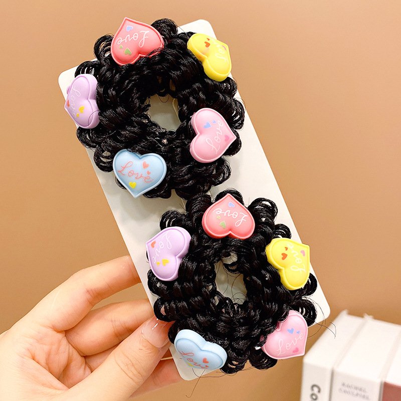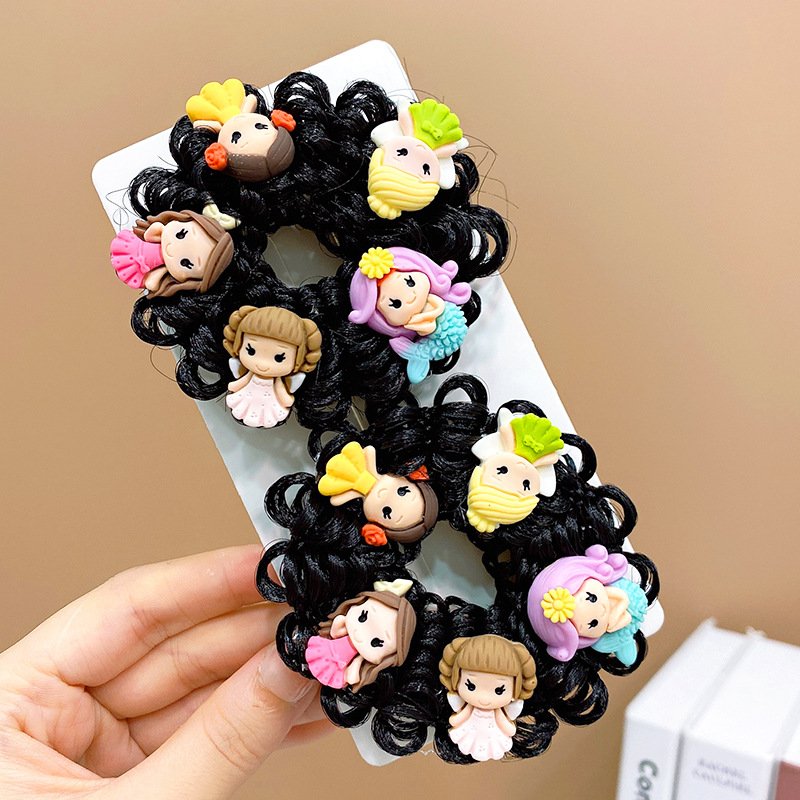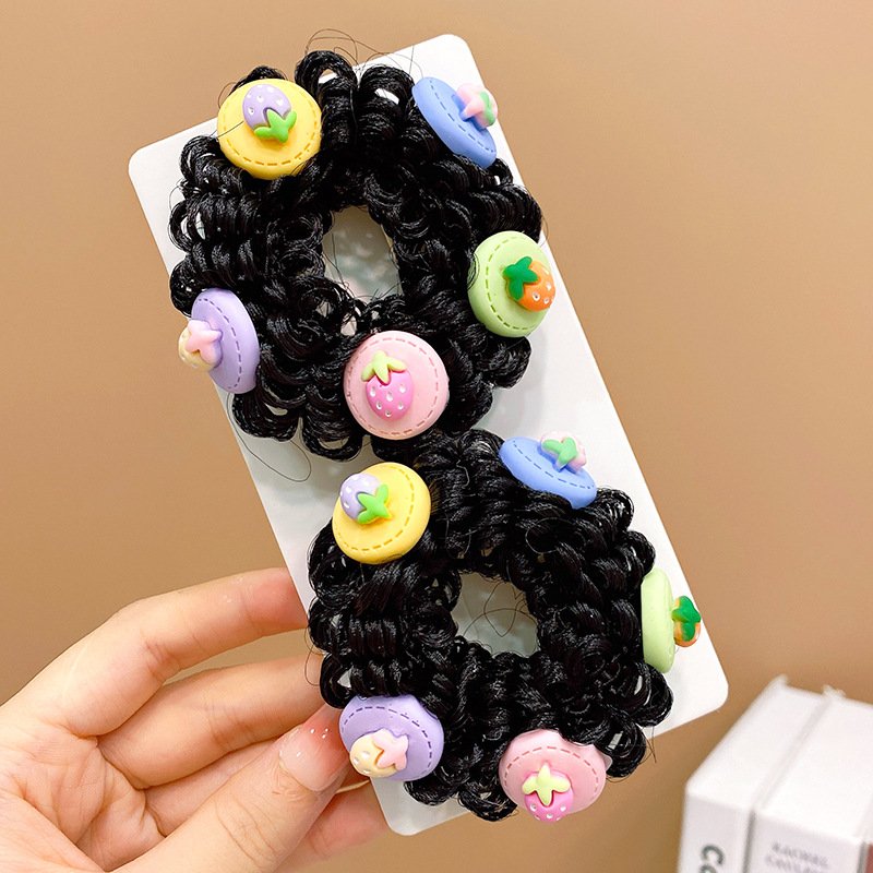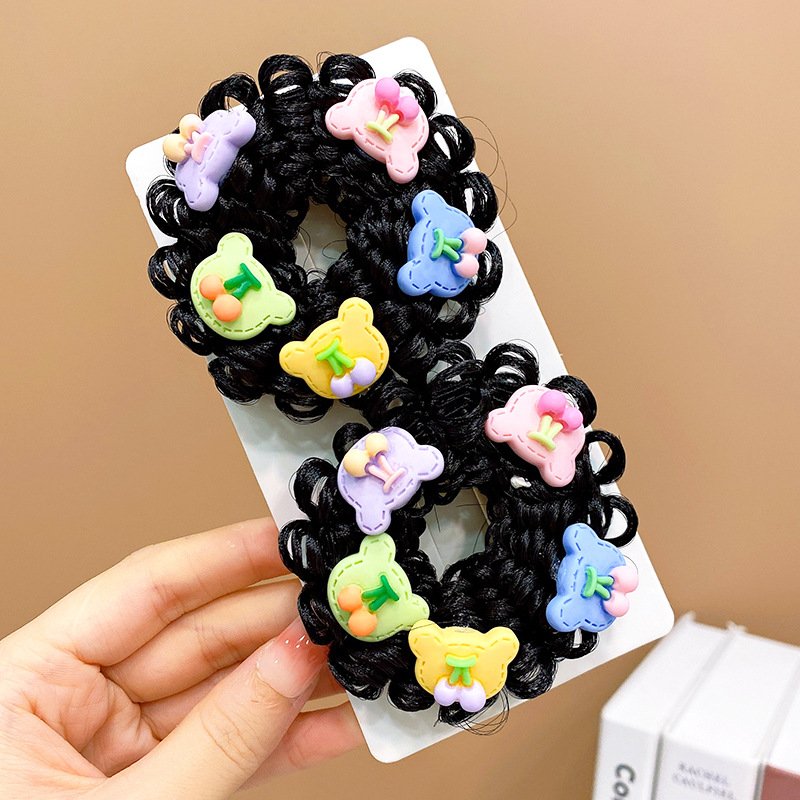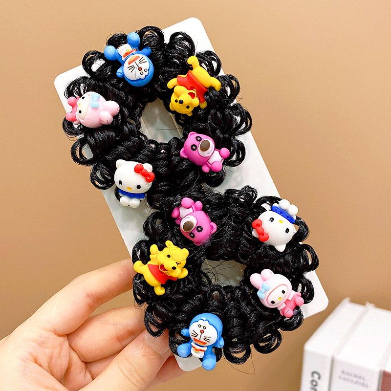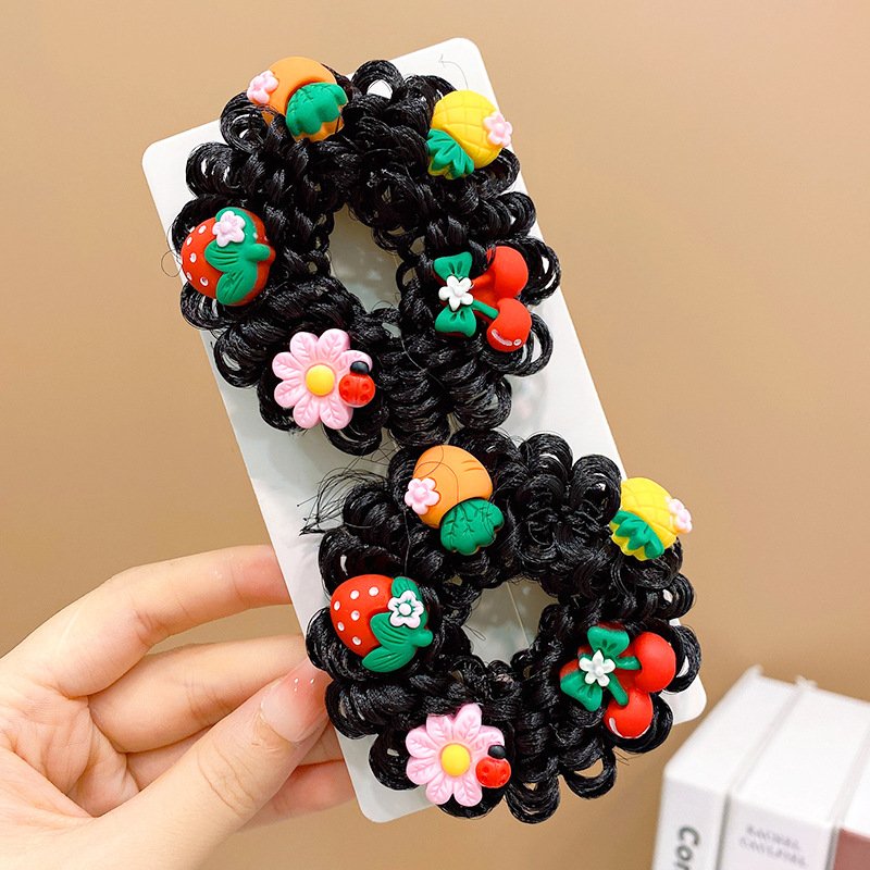 Pair of Children’s Cartoon Hair Wig High Elasticity Donut Bun