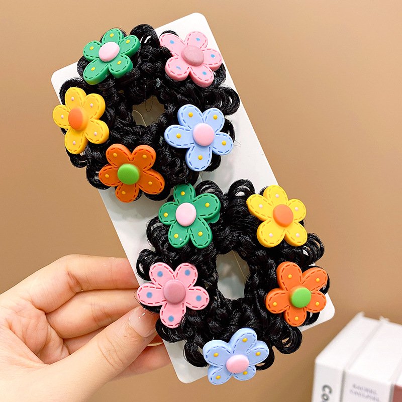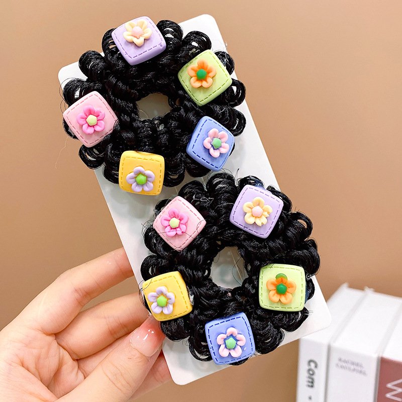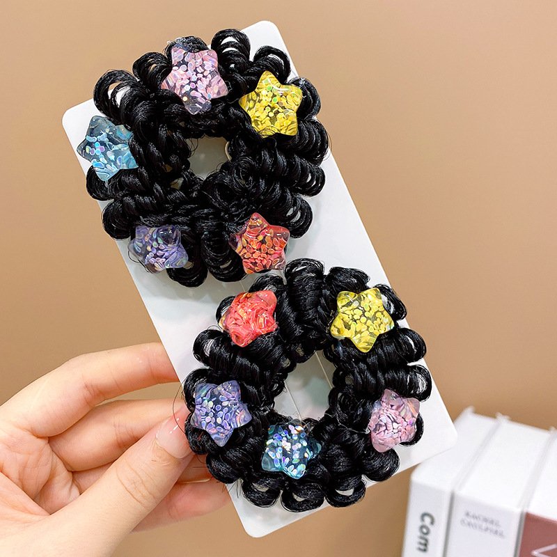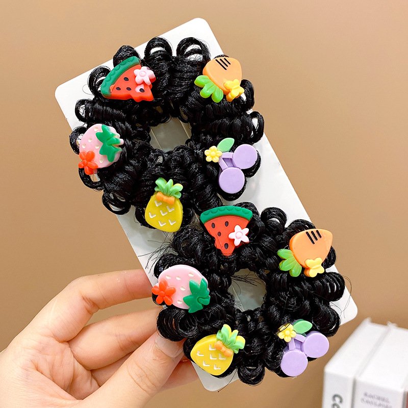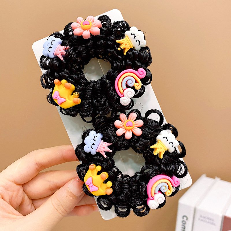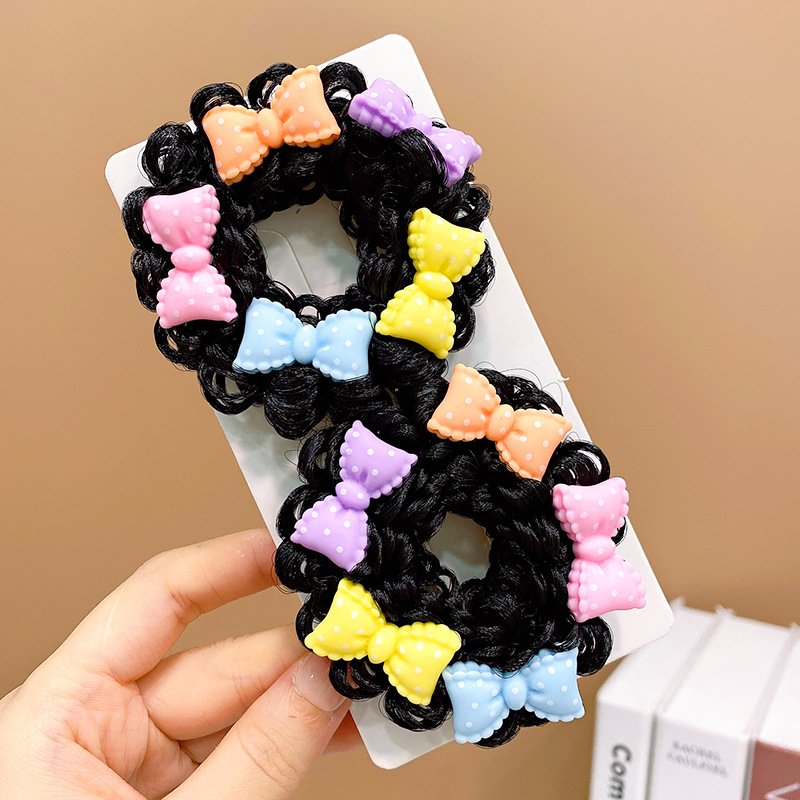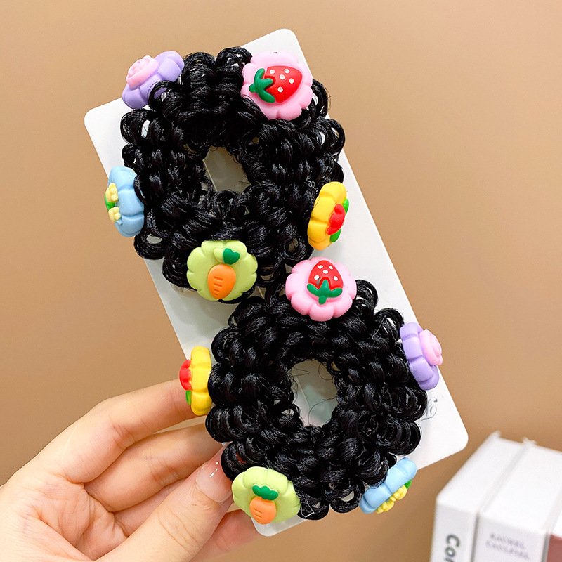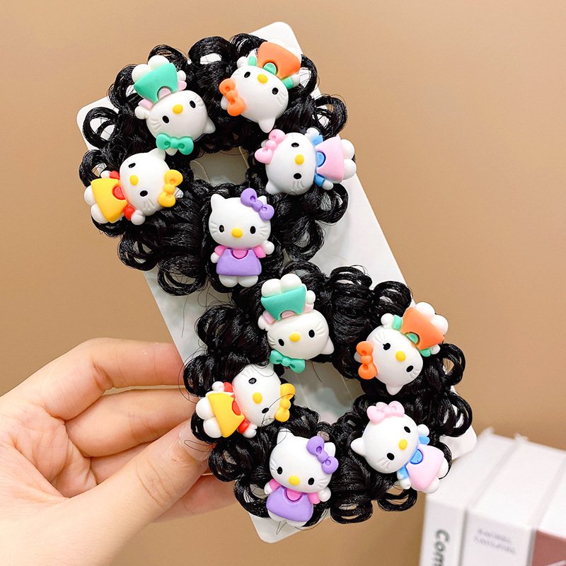 Pair of Children’s Cartoon Hair Wig High Elasticity Donut Bun