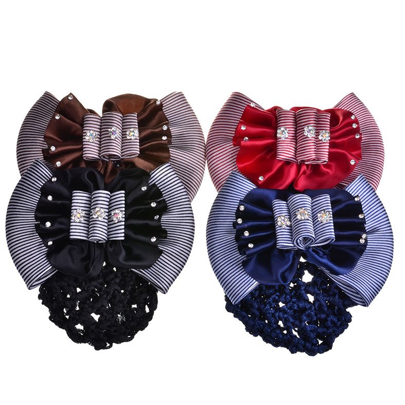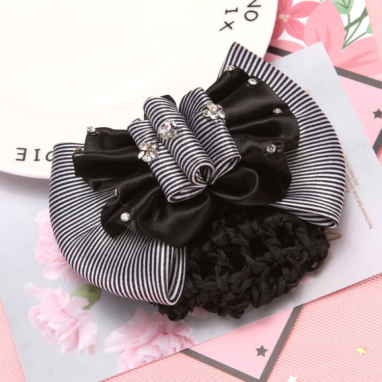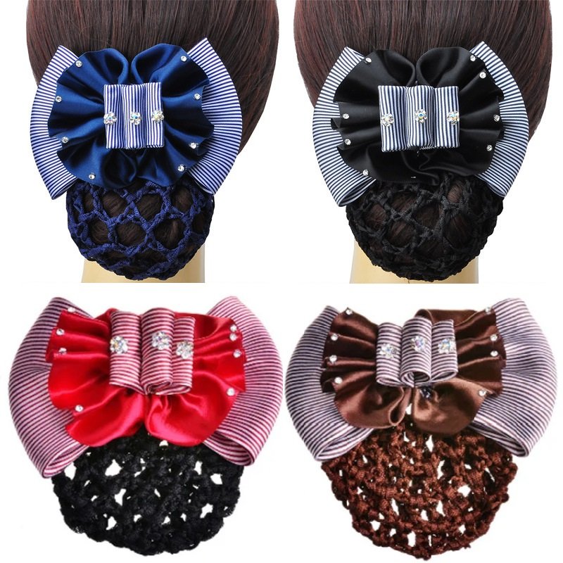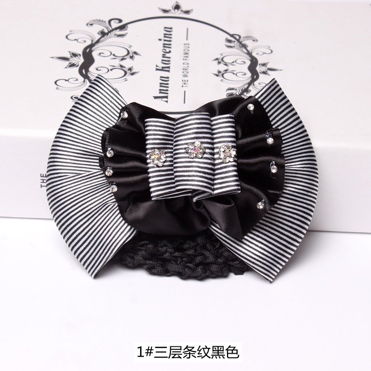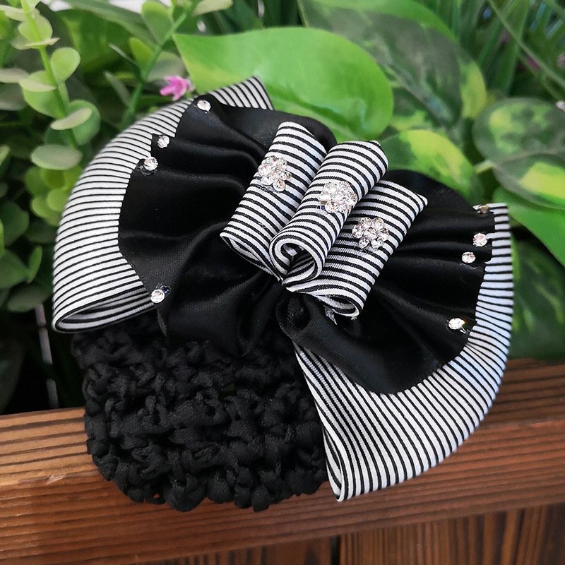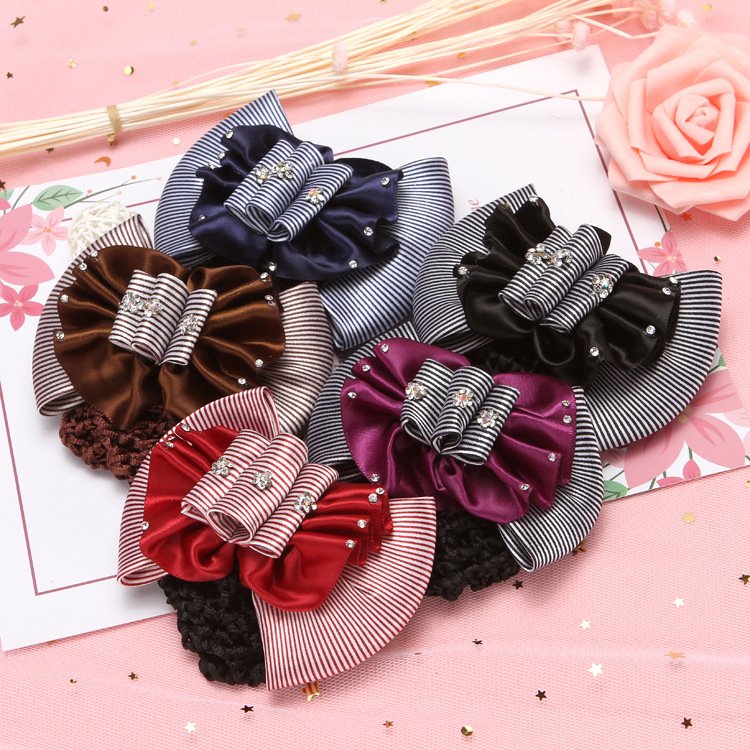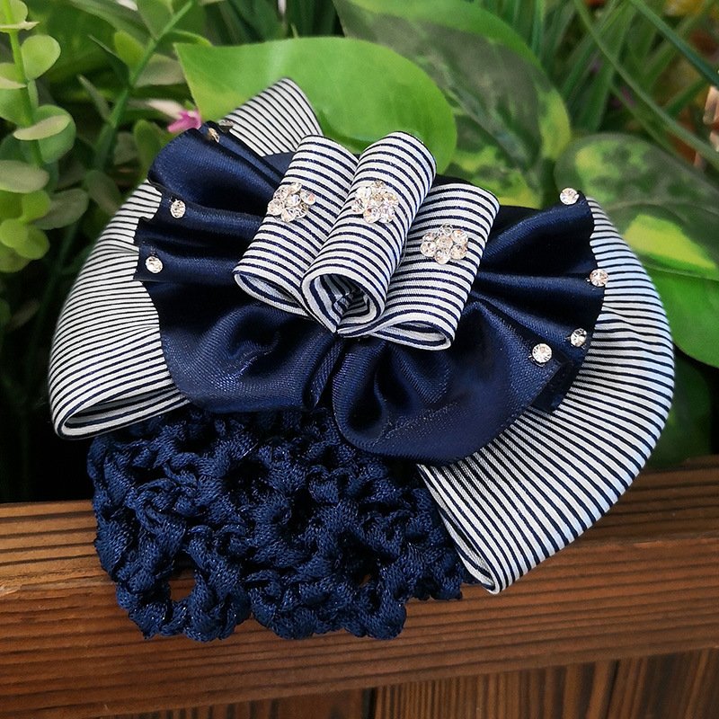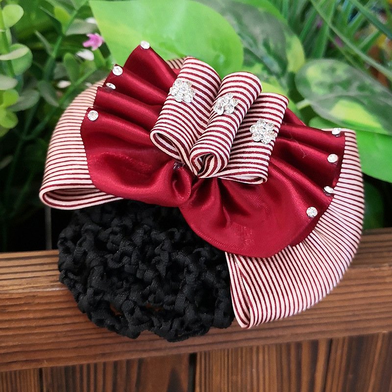 Professional Hair Net Big Bow Lining Three Loops Hair Clip