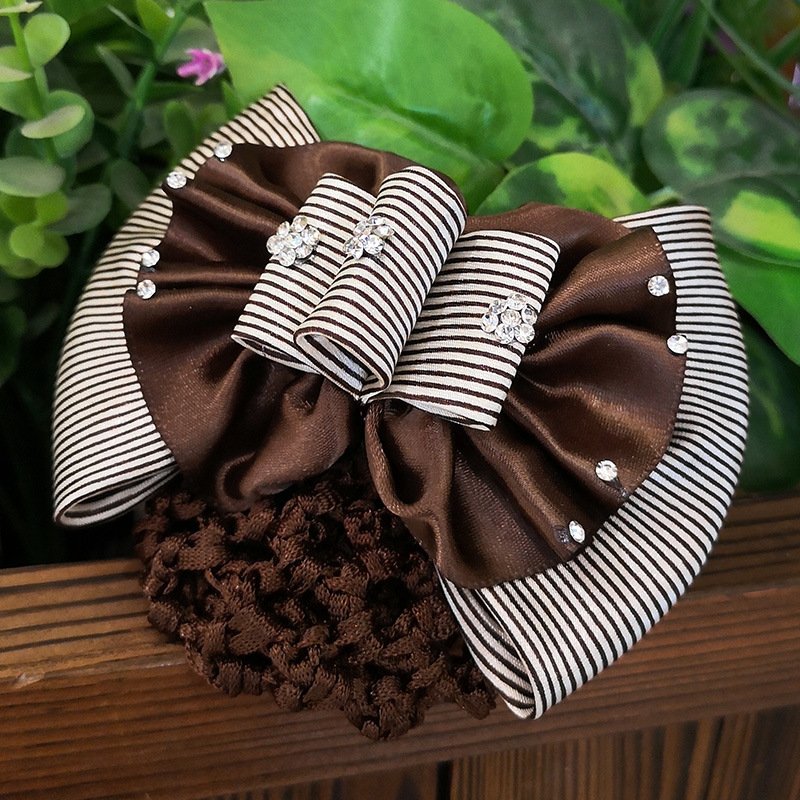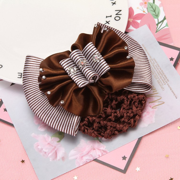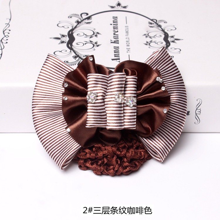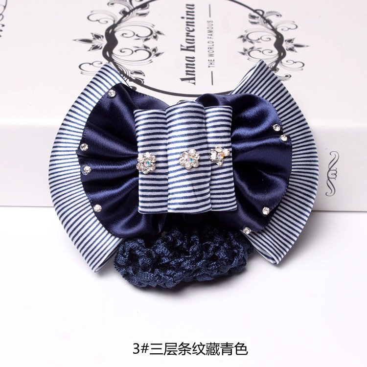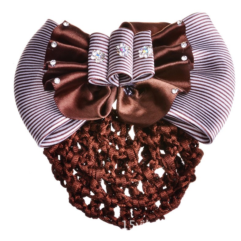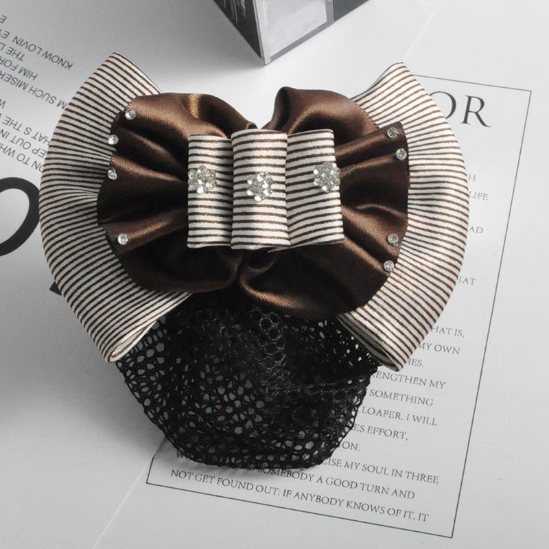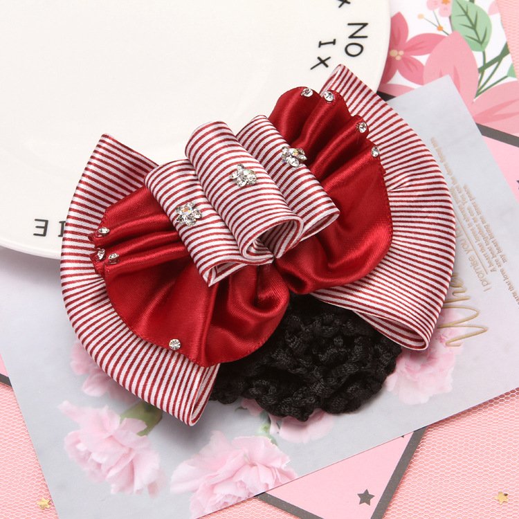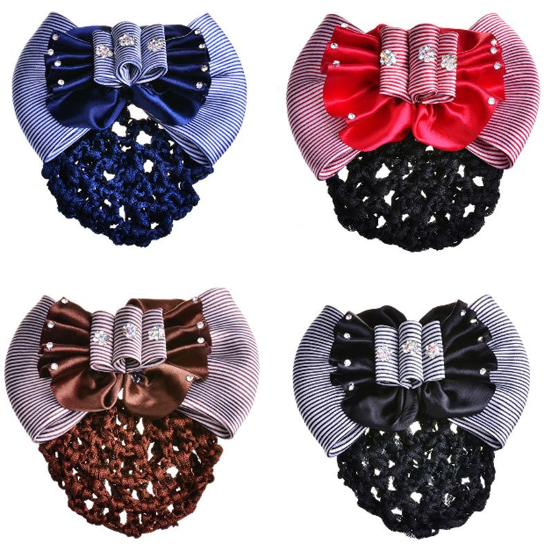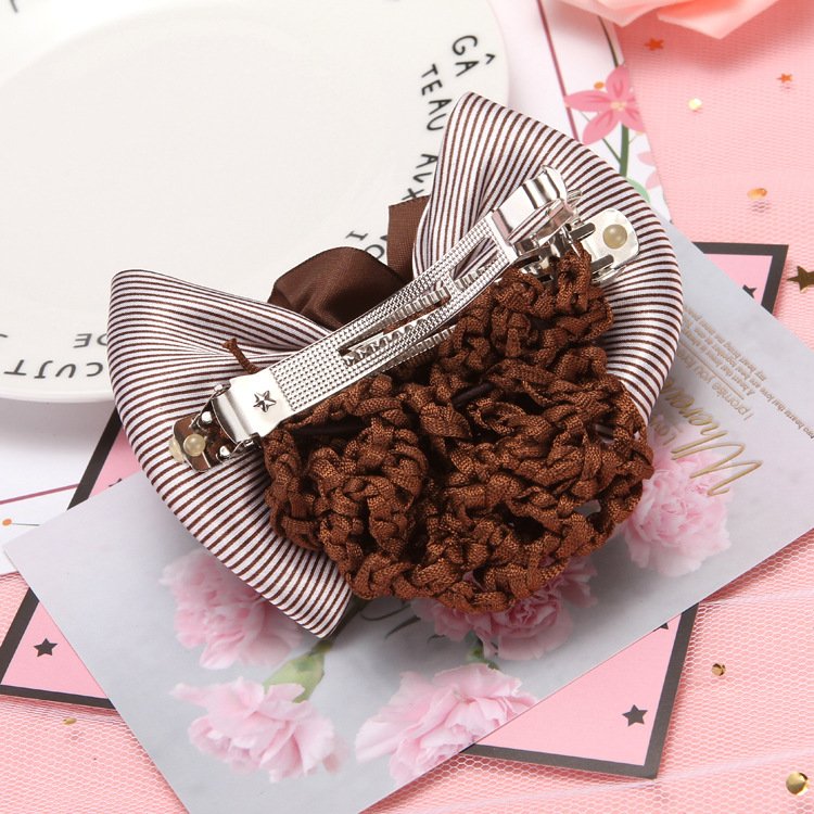 Professional Hair Net Big Bow Lining Three Loops Hair Clip