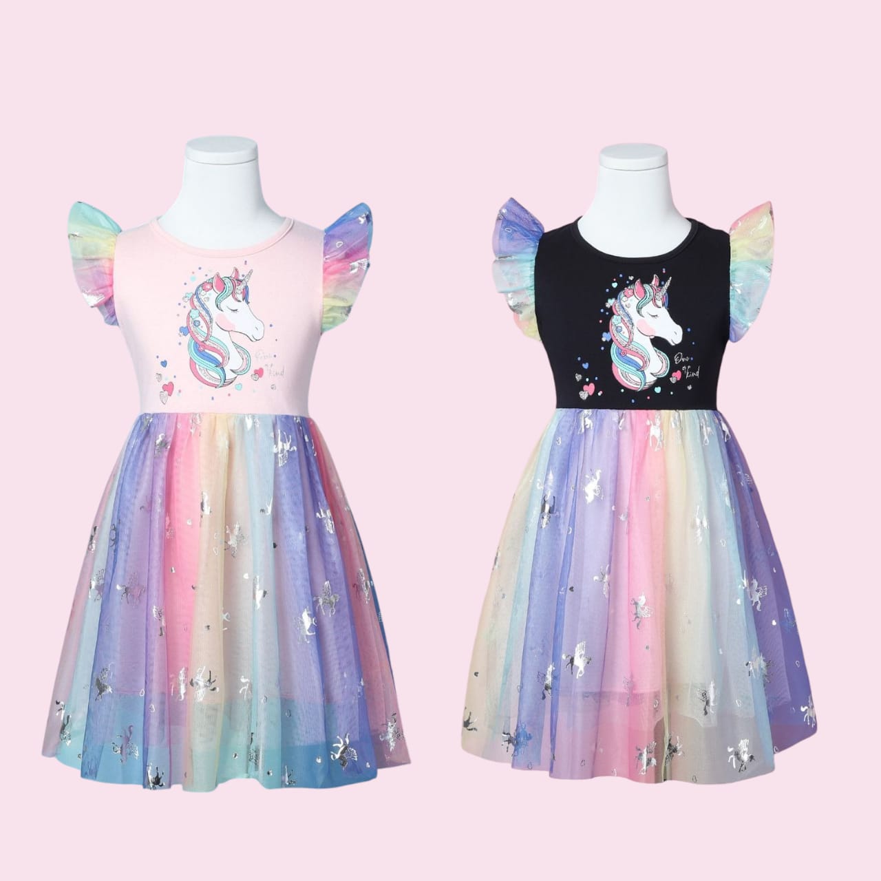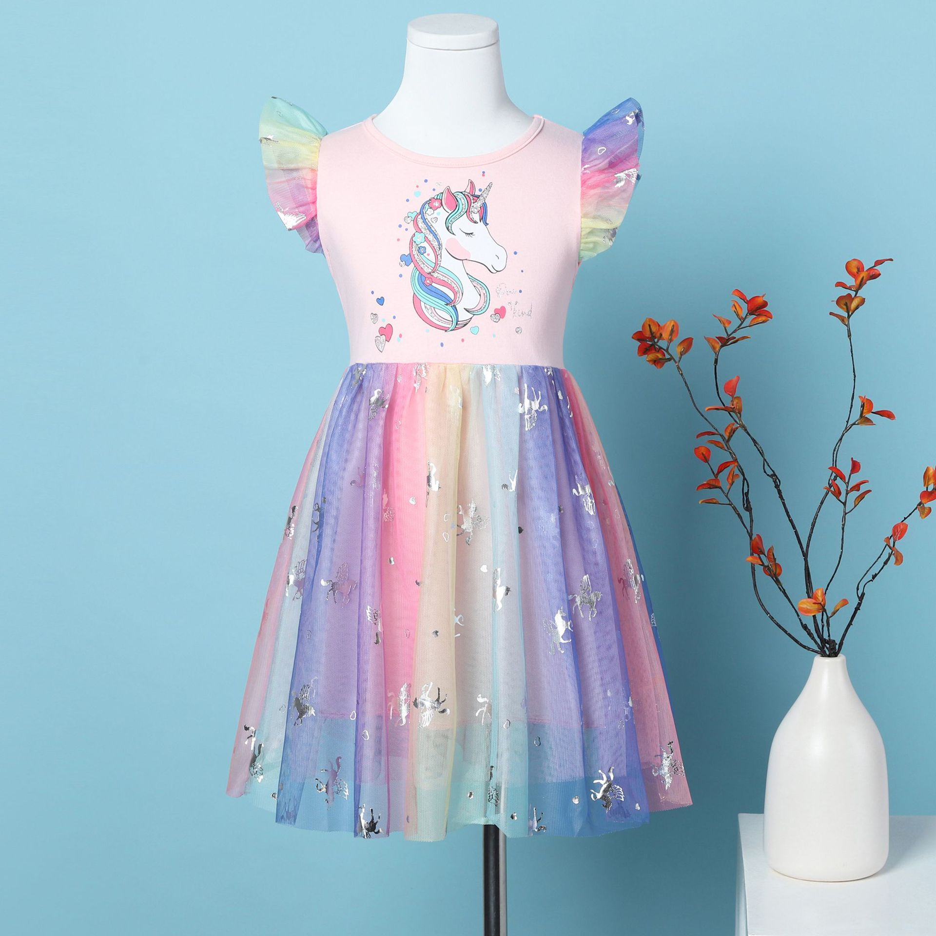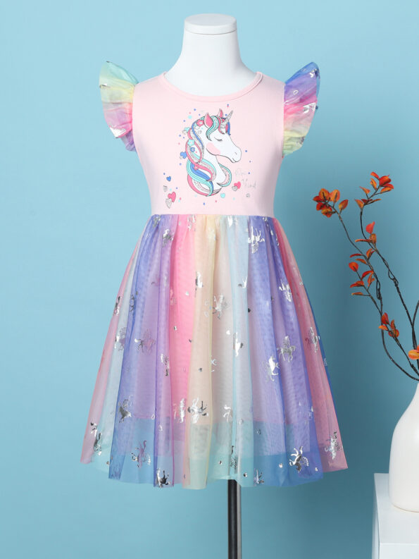 Rainbow Coloured Cotton Princess Glitter Unicorn Body Net Frock