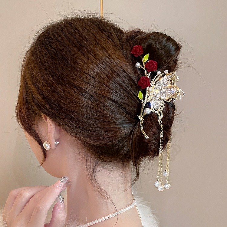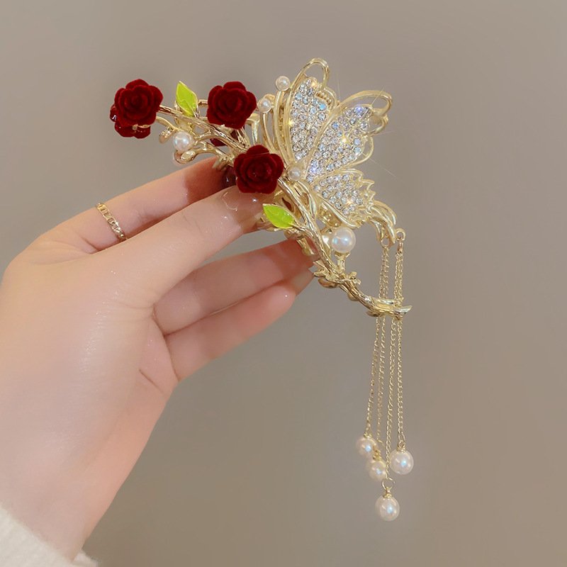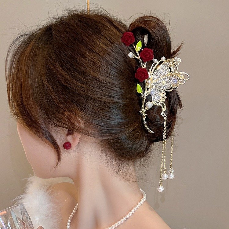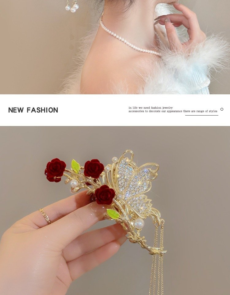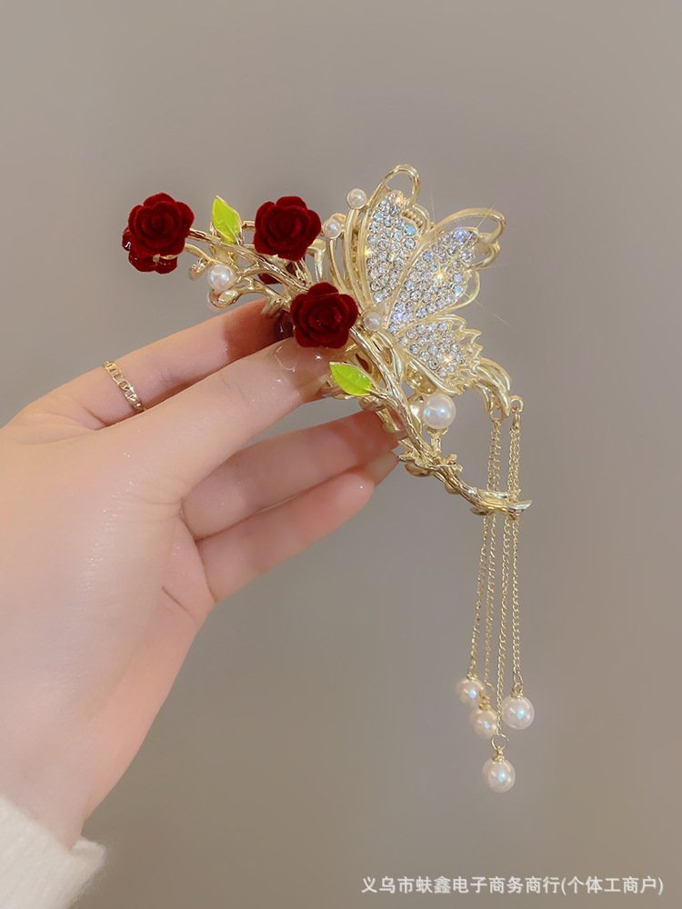 Rose Butterfly Tassel Metal Large Hair Catcher for Women