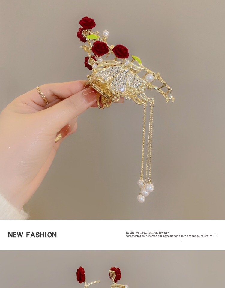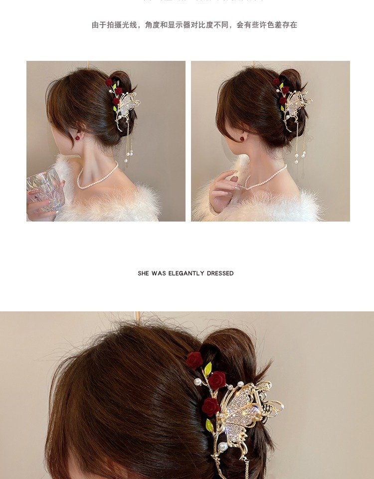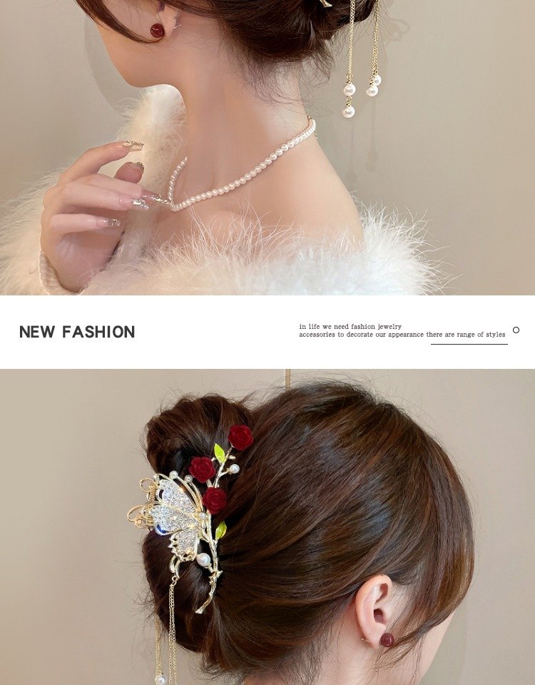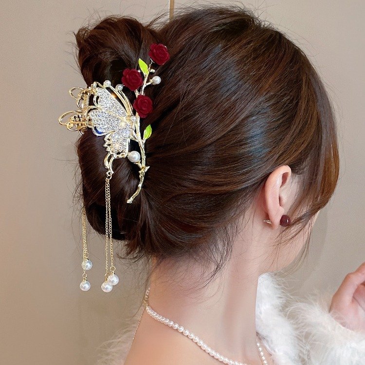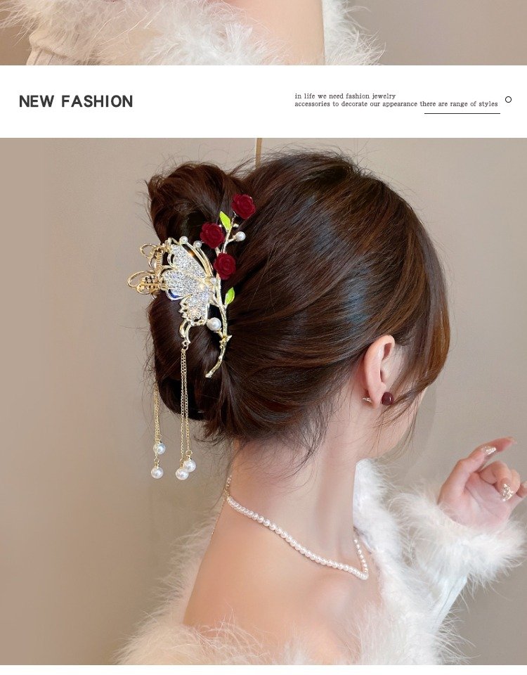 Rose Butterfly Tassel Metal Large Hair Catcher for Women