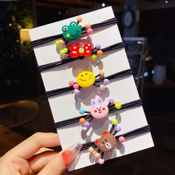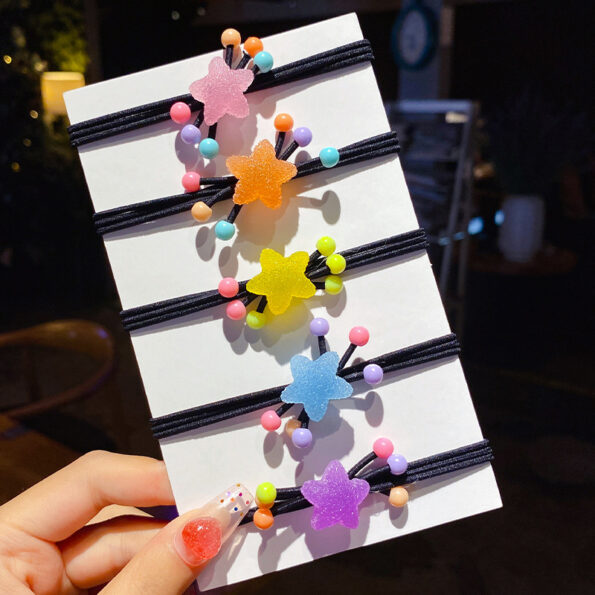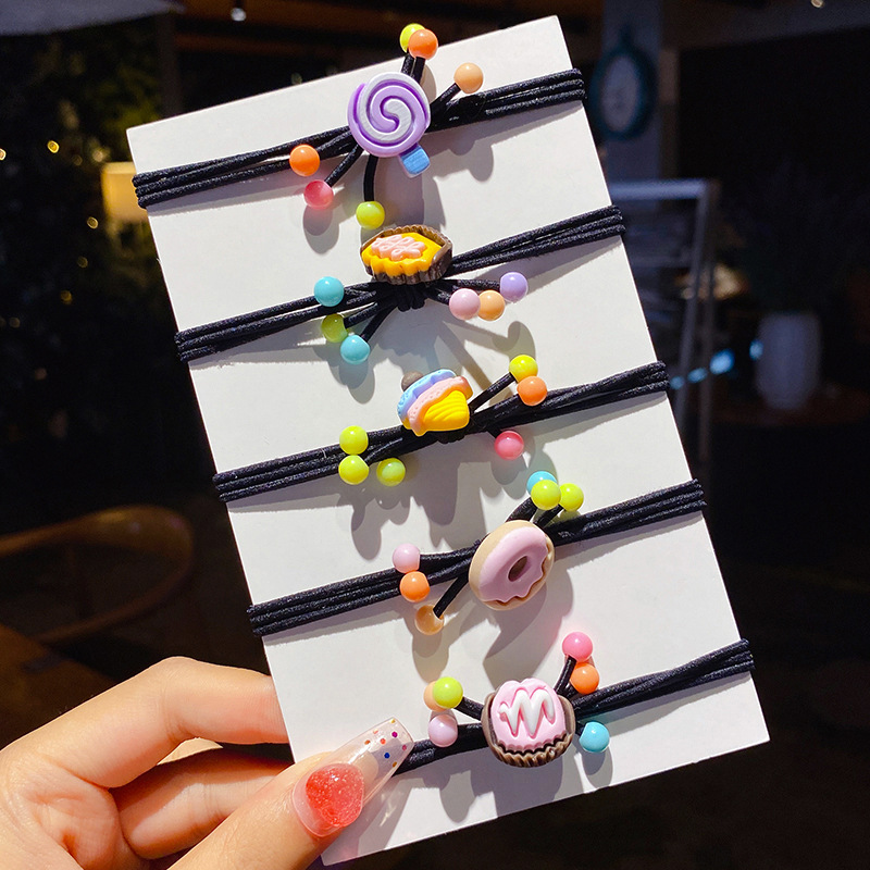 Set Of 5 Hair Tying Double Rope High Elasticity Black Ponies