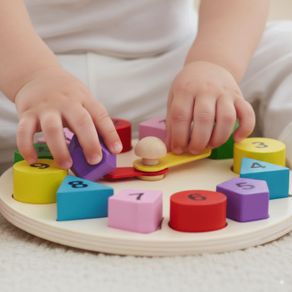 Educational Wooden Toy Clock with Removable Number Blocks – Learn Time, Shapes & Colors!