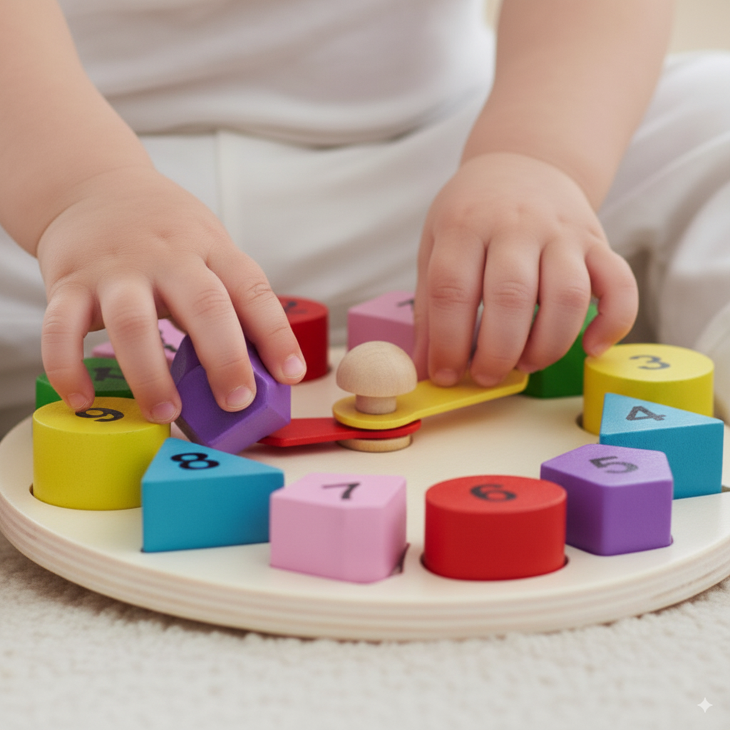 Make learning fun with this colorful and interactive Wooden Toy Clock – the perfect educational tool for toddlers and preschoolers! Each number is a removable block in different shapes, helping children learn to tell time, recognize numbers, identify shapes, and explore colors – all through play.
