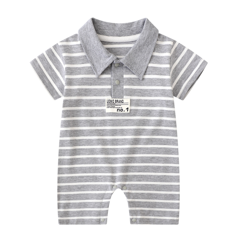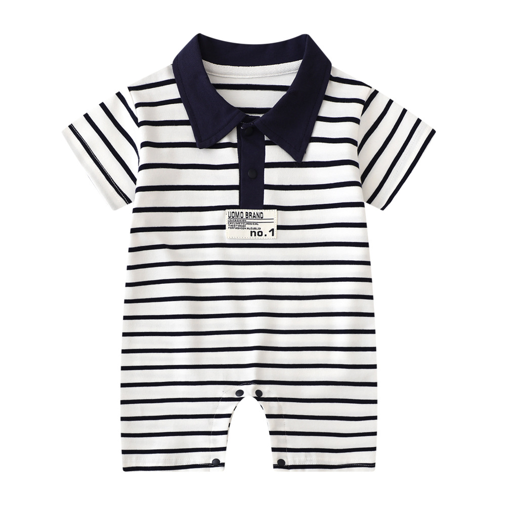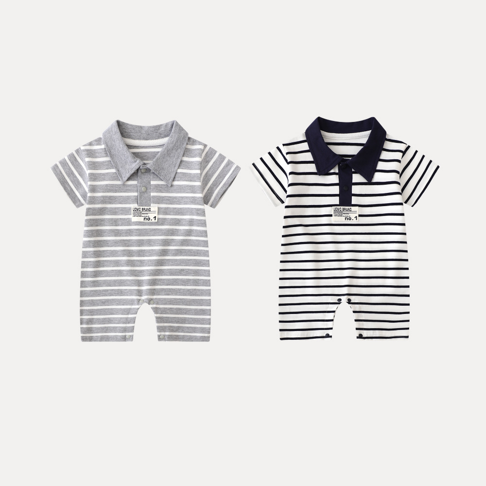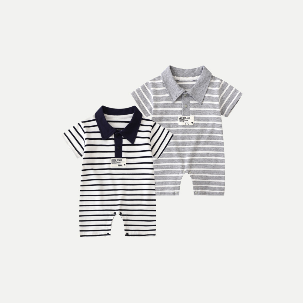 Baby Striped Cotton Romper – Short Sleeve Polo Style
