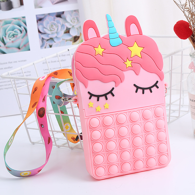 Big Sleepy Unicorn Star Pop Fidget Bag With Long Ribbon Strap