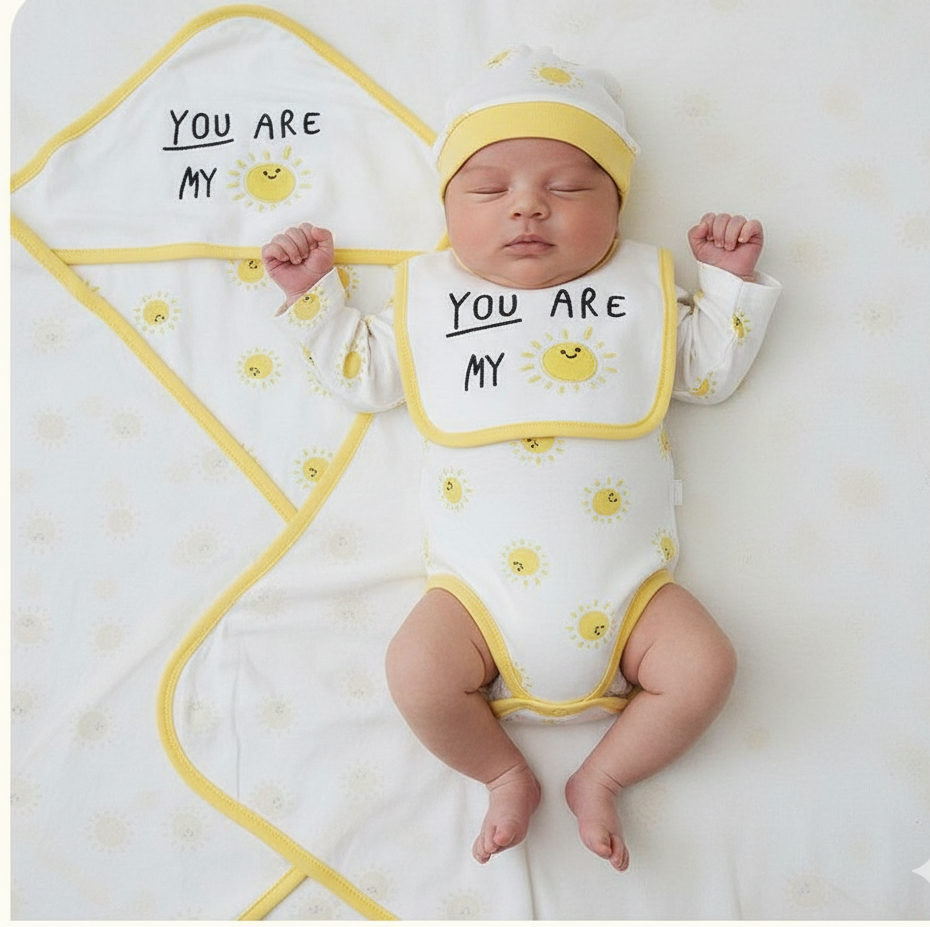 ☀️ Newborn Baby 6-Piece Gift Set – Soft Cotton “You Are My Sunshine” Baby Clothing Set