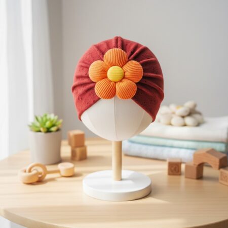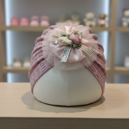 Soft Velvet Flower Embroidered Cotton Pullover Baby Comfortable Hat Cap ₨ 349